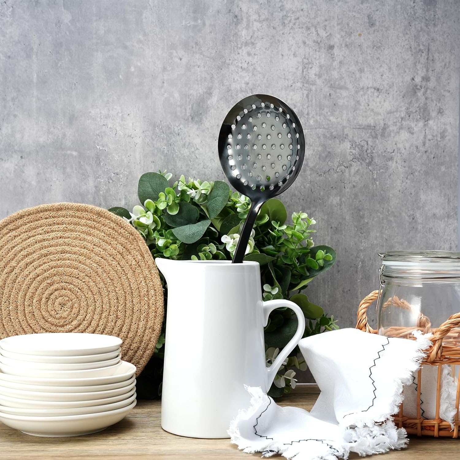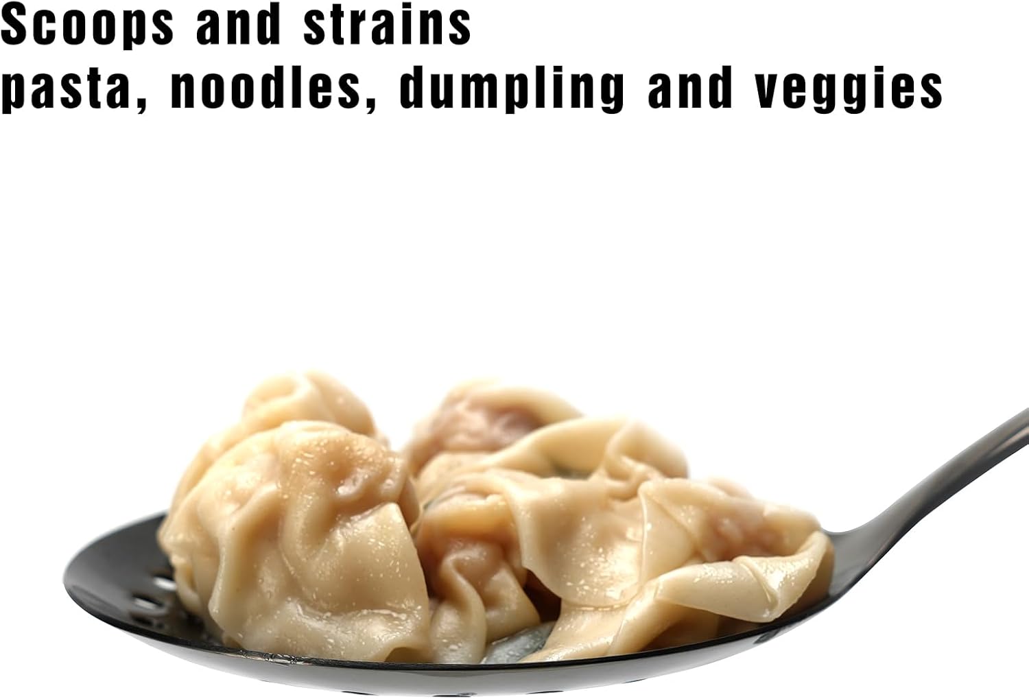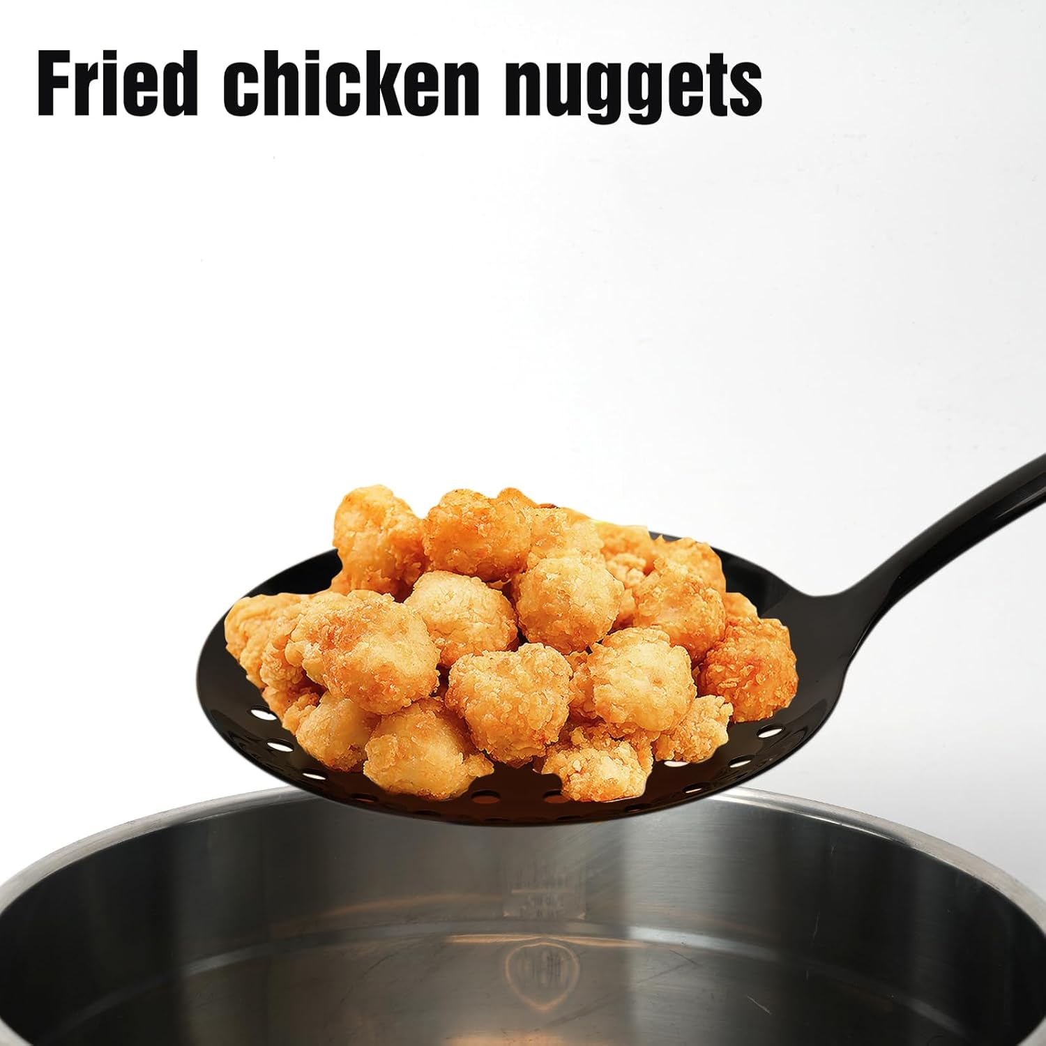 Skimmer Spoon, Slotted Spoons for Cooking, Slotted Spoon, Kitchen Stainless Steel Serving Spoons, Stainless Steel Strainer, Black
