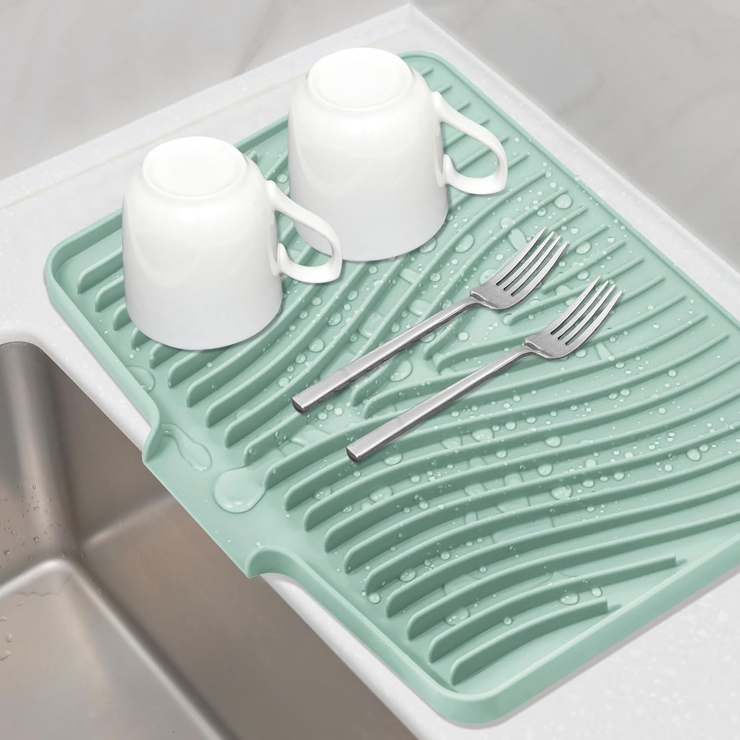 Silicone Dish Drying Mat, Stone Drying Mat for Kitchen Counter with Built-In Drain, Non-Slip Drain Pad with Built-in Drain, Heat Resistant Stone Drying Mat, 1Pcs 19.7" x 17", Mint