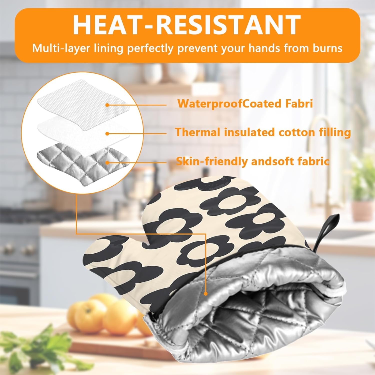 - 【Material】:The Kitchen decor oven mitts and pot holders sets are made of heat insulation polyester fabric, soft quilted cotton lining making