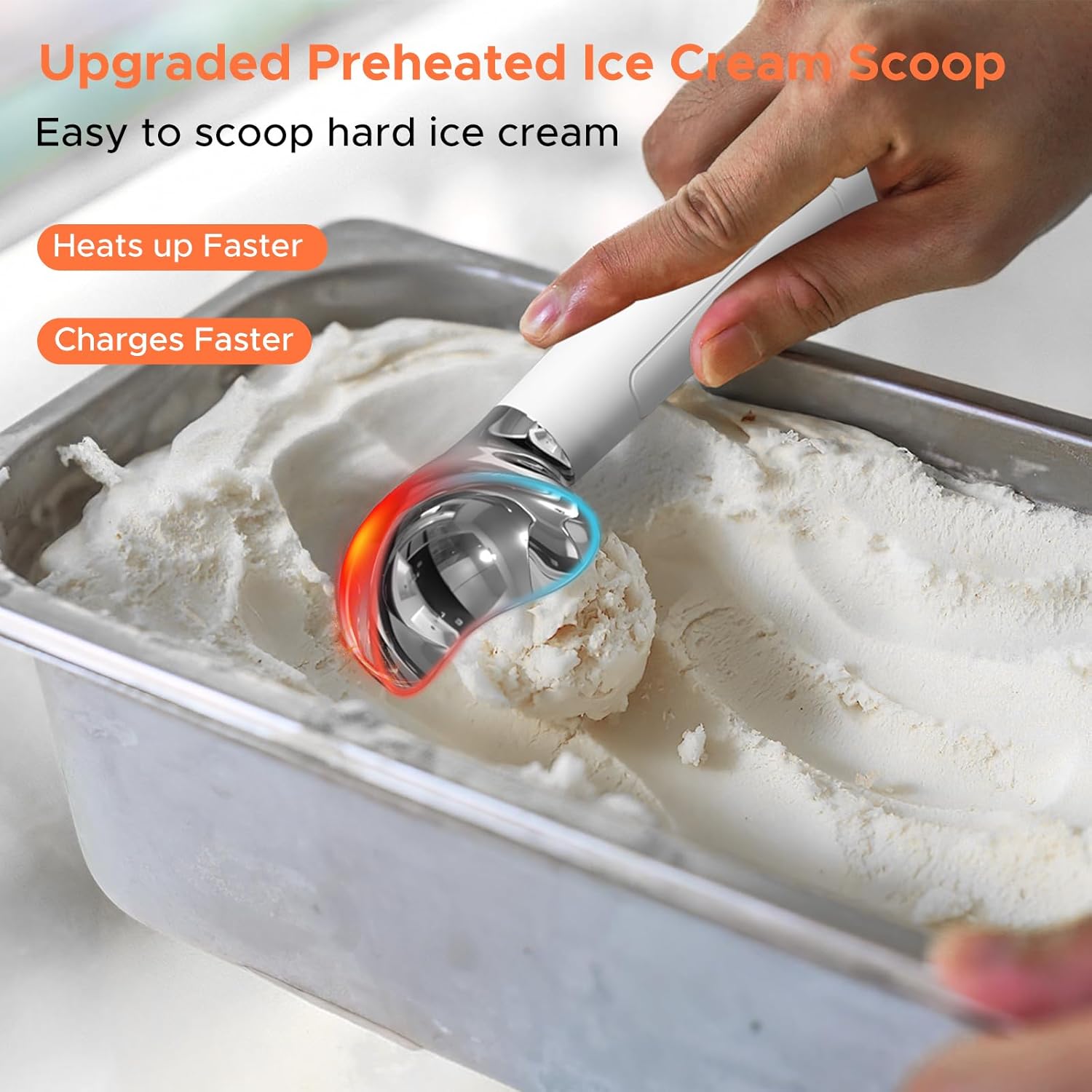 LT LAUDTEC Heated Ice Cream Scoop, Rechargeable Electric Warming Scooper, Heats to 158F for Hard Ice Cream, IP67 Waterproof, Easy for Seniors & Kids (White)