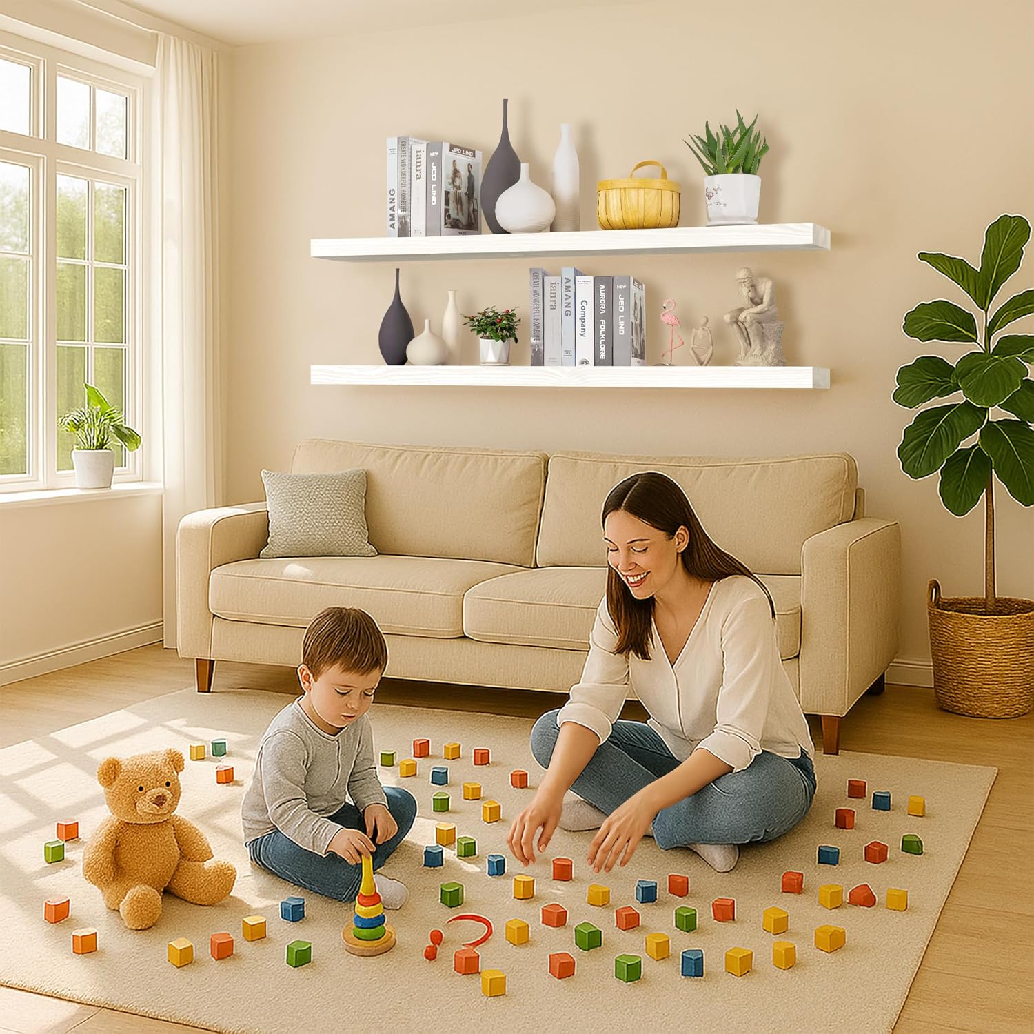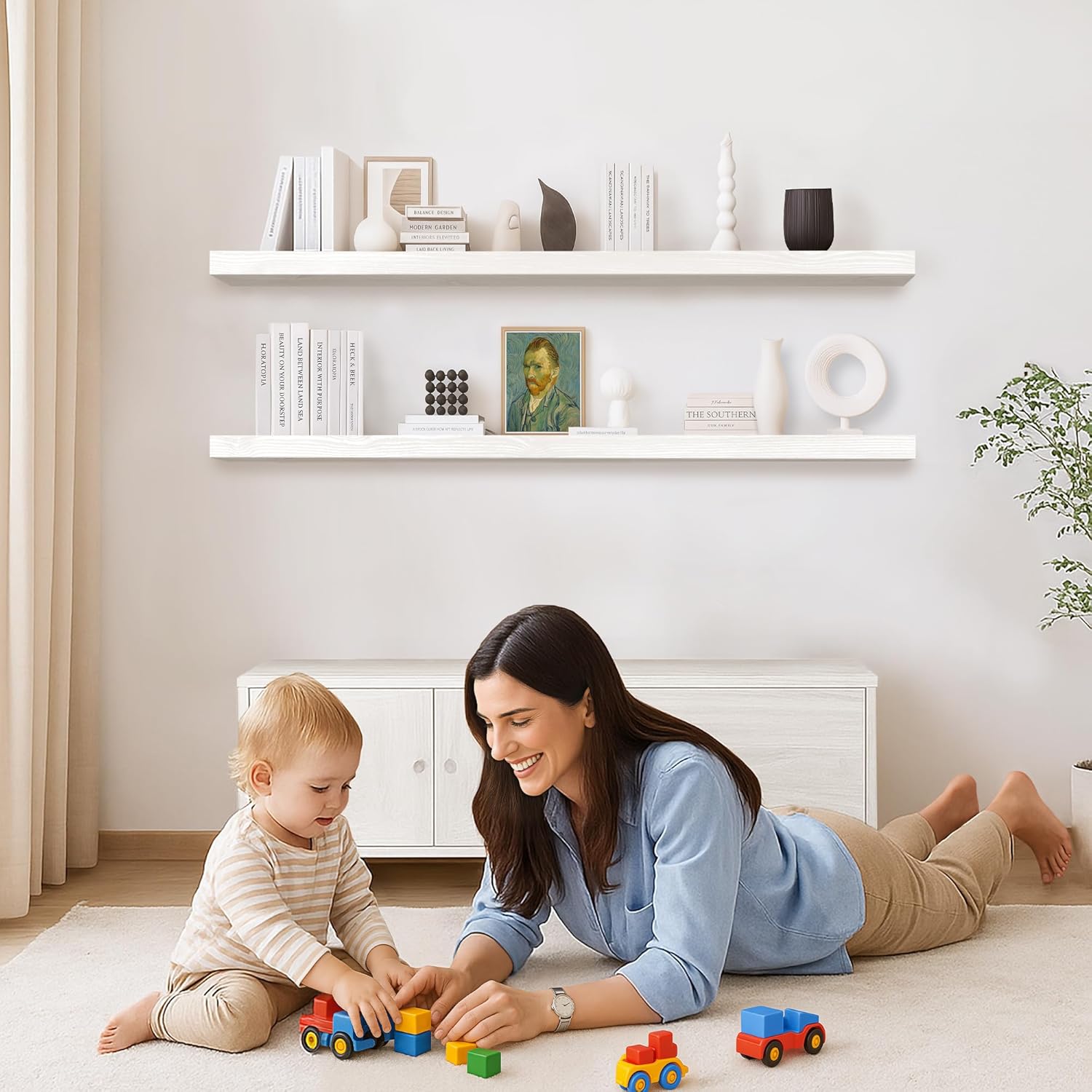 - Seamless Integration: The neutral finish of our floating shelf seamlessly integrates with a wide array of design aesthetics, making it an ideal addition to any home. Enhance your space with this functional piece that combines storage and style effortlessly.