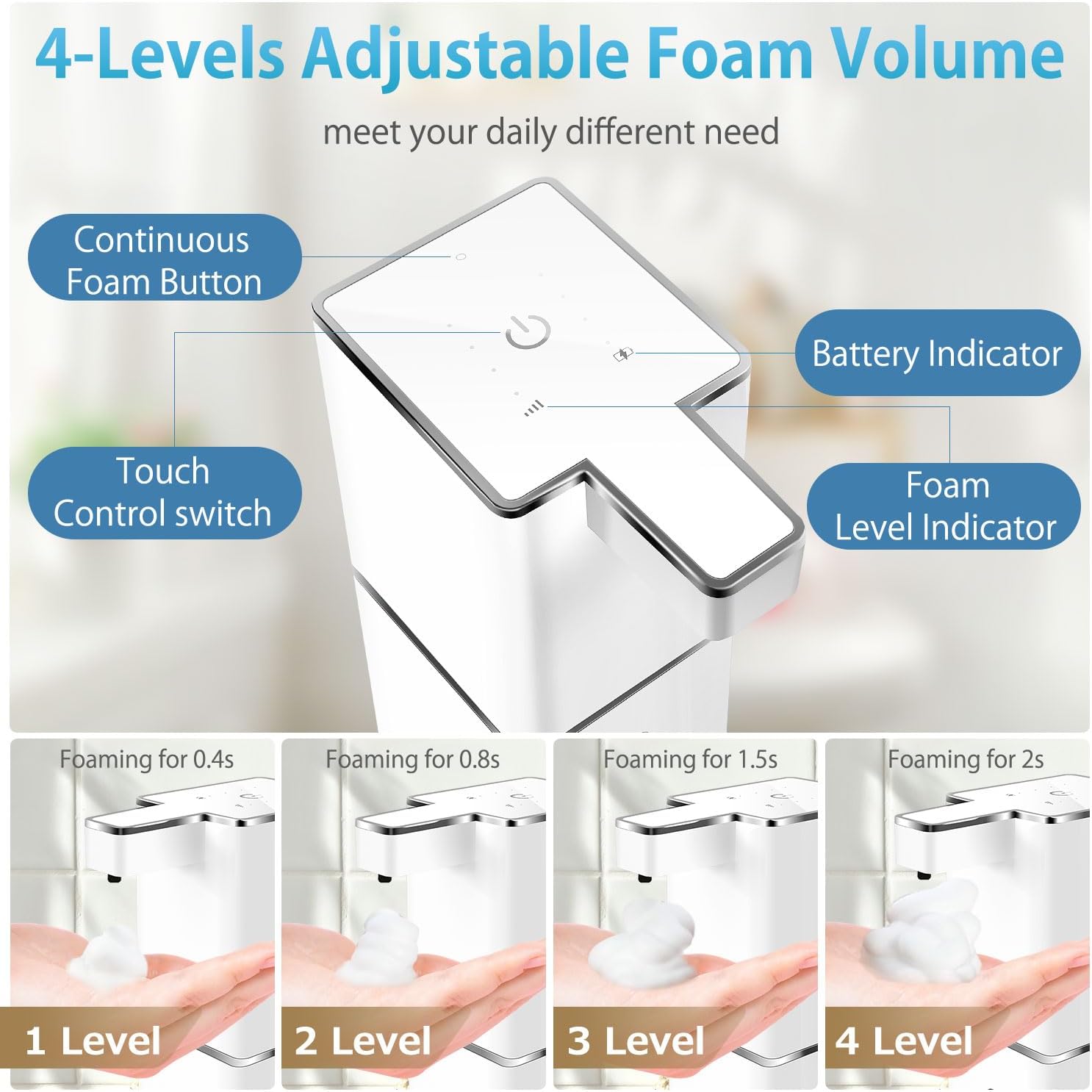 - 【Adjustable Soap Volume Dispenser】 With 4 adjustable soap volume settings, this dispenser allows you to customize the amount of foam, preventing wastage and providing the perfect dose every time.