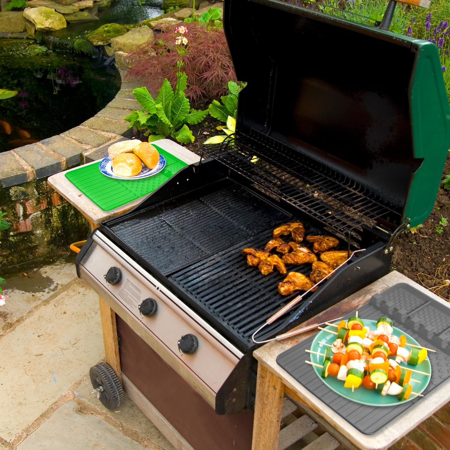 2 PCS Silicone Griddle Tools Mat for Blackstone,Grill BBQ Caddy Utensils Holder for Kitchen,Cooking & Countertop,Large Spatula Mat with Drip Pad,Griddle Accessories for Blackstone (green 2pcs)