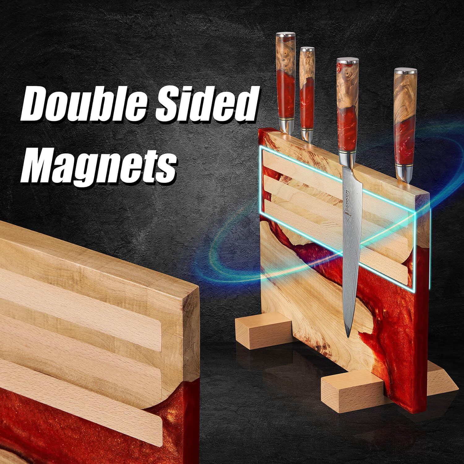 - 【 Beautiful Red Resin Blend 】The "Red Tsunami" Magnetic Knife Block is finished with anti-skid felt pads on the bottom, making it safer to use on slippery counter tops than ordinary blocks.