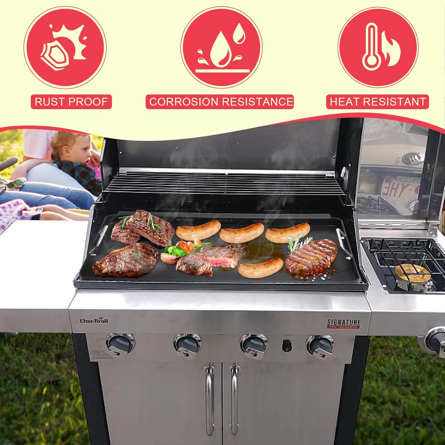 - Safe, Secure & Easy to Handle: Integrated side handles let you lift and reposition the plate safely, even with oven mitts. The snug fit prevents wobbling during cooking, and the raised edges keep grease from dripping into your grill. Upgrade flat griddle top plate for charbroil commerical 4 burner gas grill with a griddle that stays put—no more juggling grill griddle.