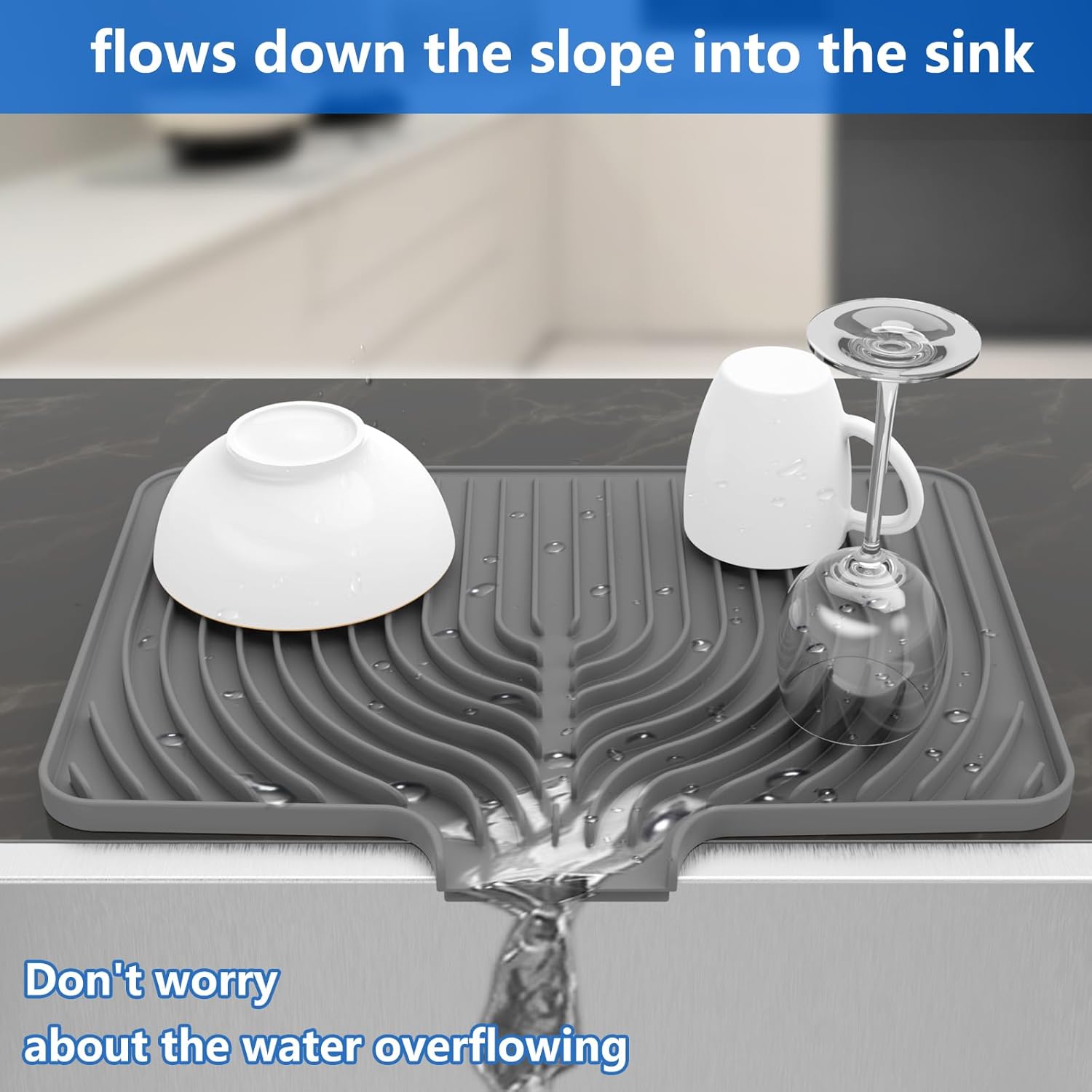 - USE BY YOUR SINK : This silicone dish drying mat equipped a side drain spout and streamlined water guides. Place it by your kitchen sink and direct the water from the dishes into the sink so you don't have to pour out the water from the drying mat.