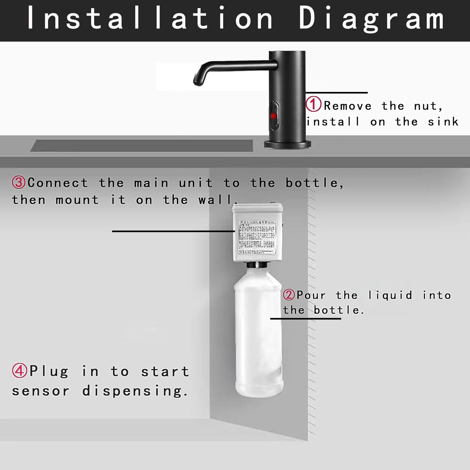 Touchless Automatic Soap Dispenser for Kitchen Bathroom Sink Built in Liquid Commercial Electric Soap Dispenser with Bottle and Pump Matte Black