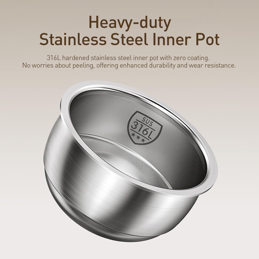 - Innovative Non-Stick Technology: Combining precise temperature control with a built-in fan and 200,000 micro-pits, the stainless steel inner pot forms a water film at the end of rice cooking for a healthy non-stick effect. This design retains the benefits of stainless steel while ensuring easy cleaning, making everyday cooking effortless.