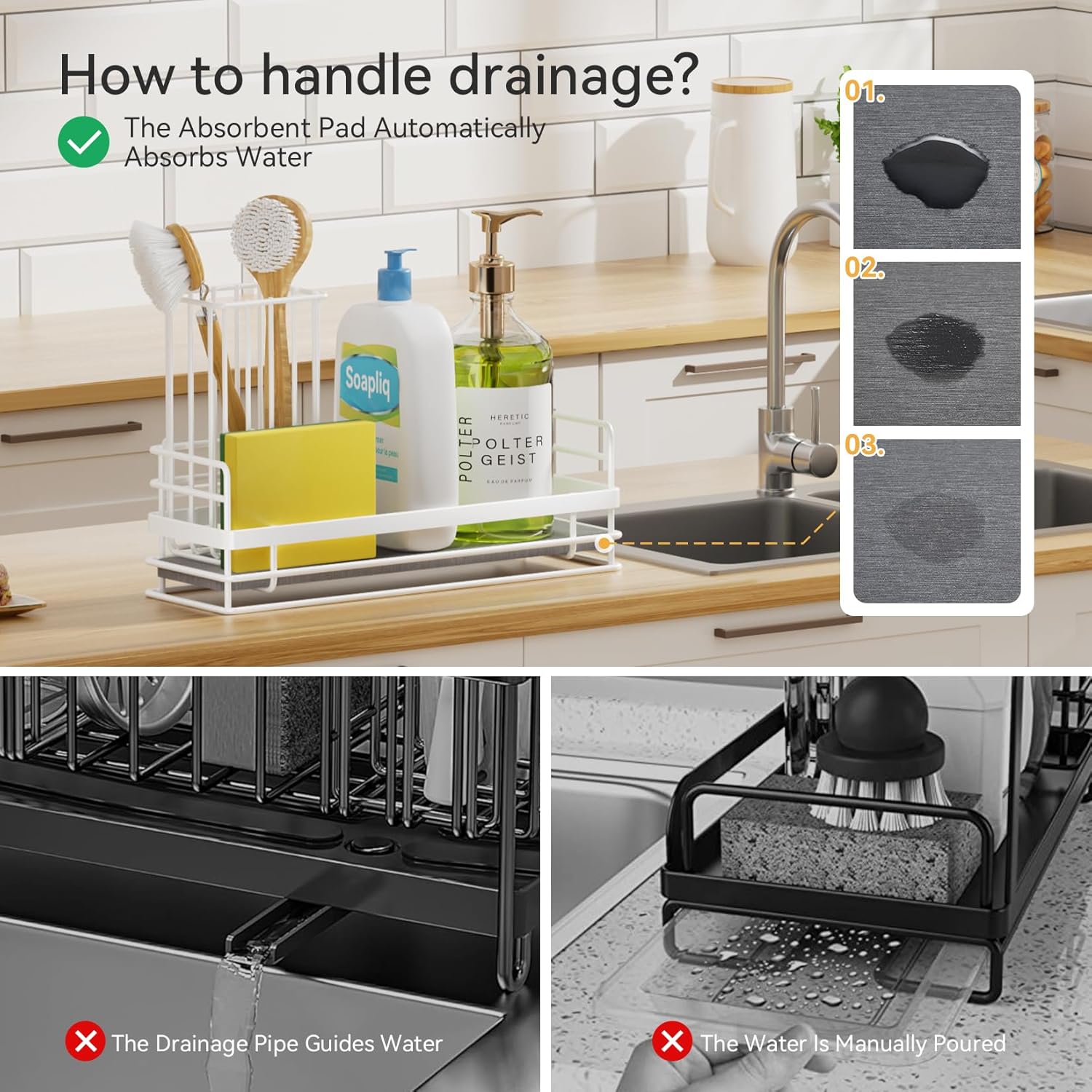 Yofidra Sink Caddy with Stone Drying Tray: Stainless Steel Soap Dispenser Kitchen Sink Organizer Set, Sponge Holder Counter Accessories Decor for Kitchen Organizers and Storage 8.1x3.5x4.5 in White