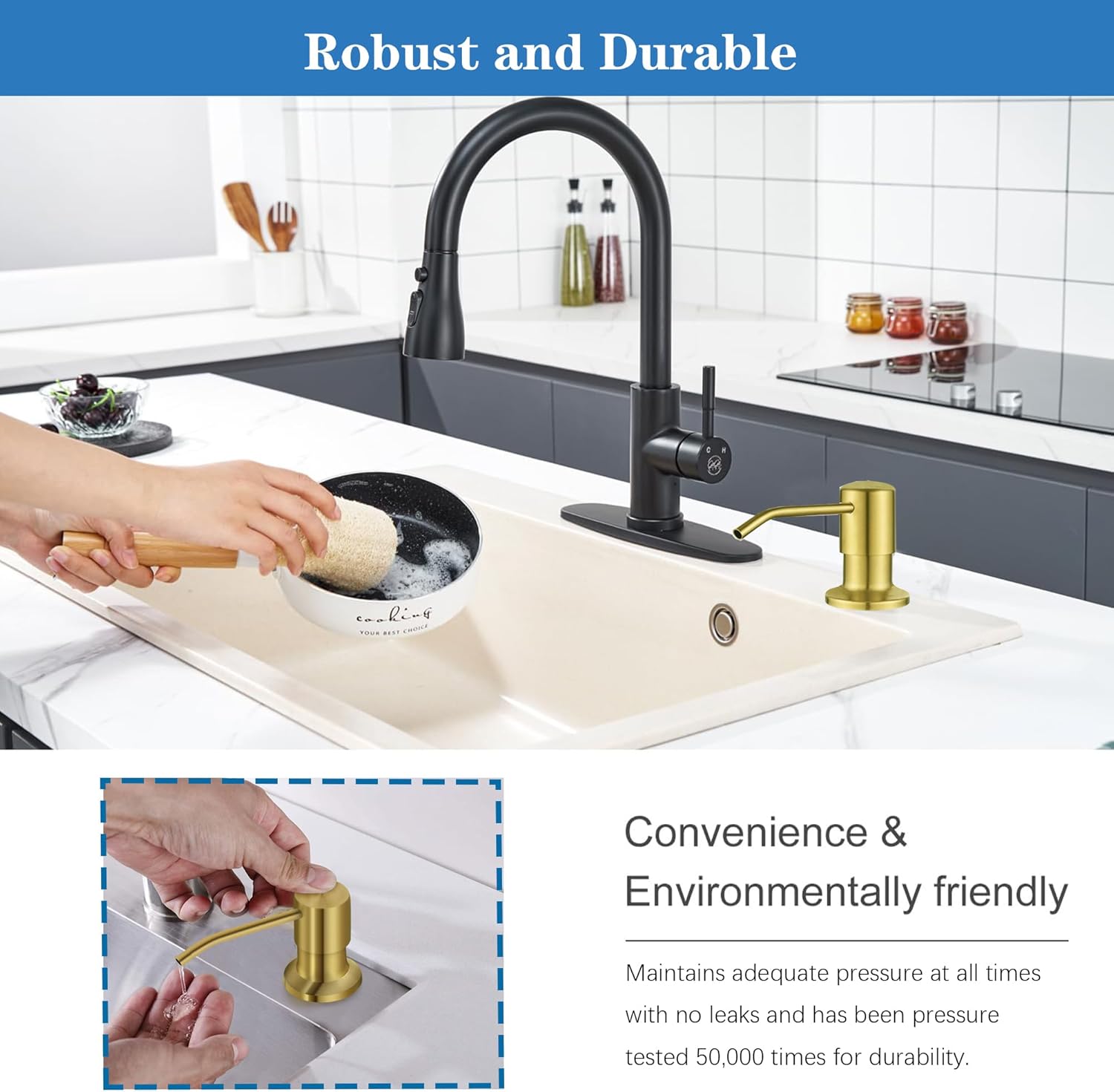 Soap Dispenser for Kitchen Dish Sink Built in Soap Dispenser Pump Gold with 47" Extension Tube Kit