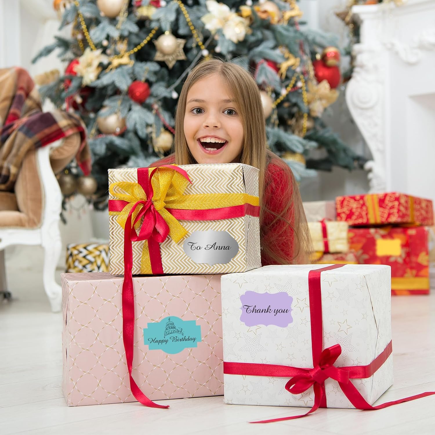 Silver Labels Stickers, 250 PCS 3" x 2" Fancy Shape Stickers Labels for Storage Box or Food Jars Holiday Present Stickers Christmas Gift Tags Stickers