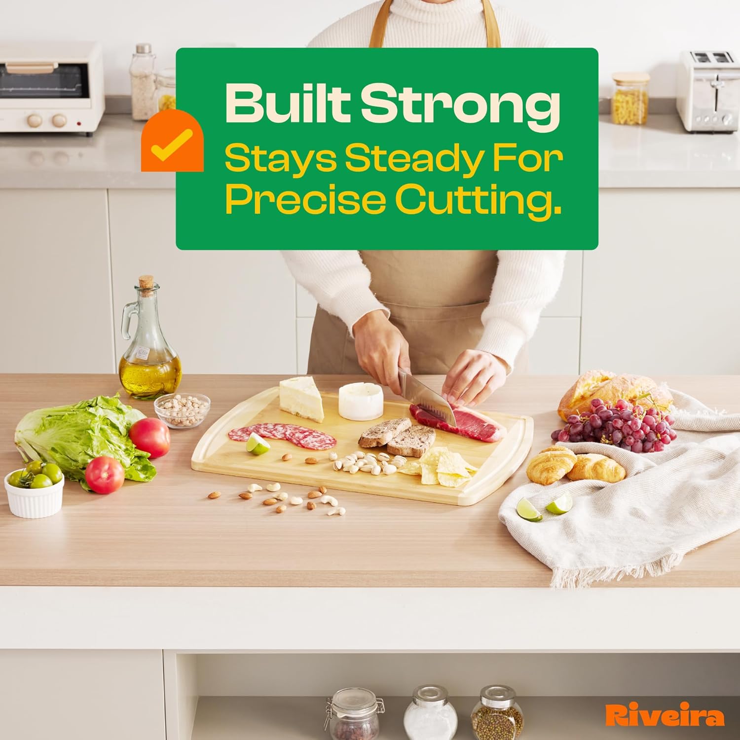 Riveira Two Tone Bamboo Wood Cutting Board – Gourmet Bamboo Grandeur: 20 x 14 Wooden Cutting Board – Wooden Cutting Boards For Kitchen Decorative – Innovative Juice Grooves Wooden Chopping Board