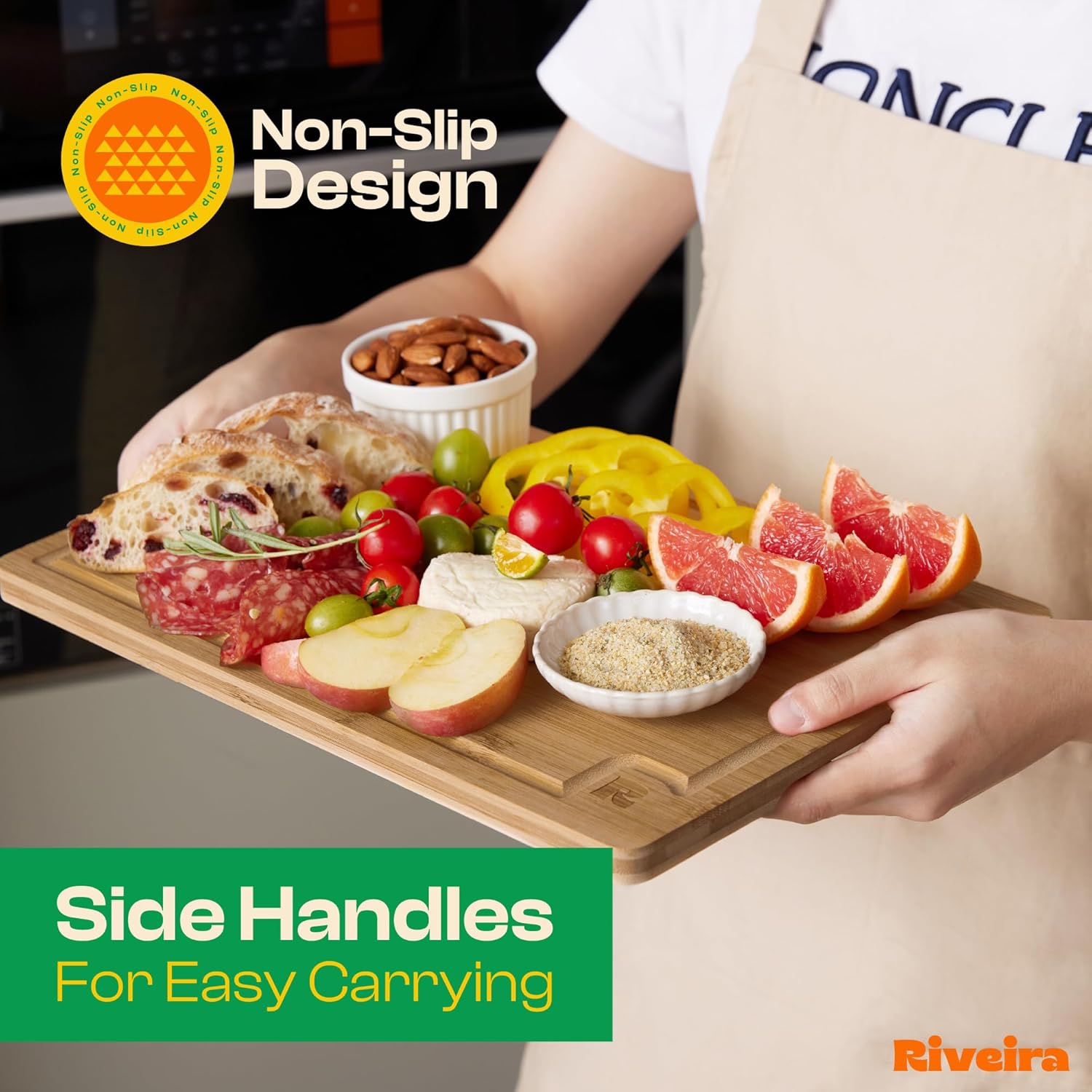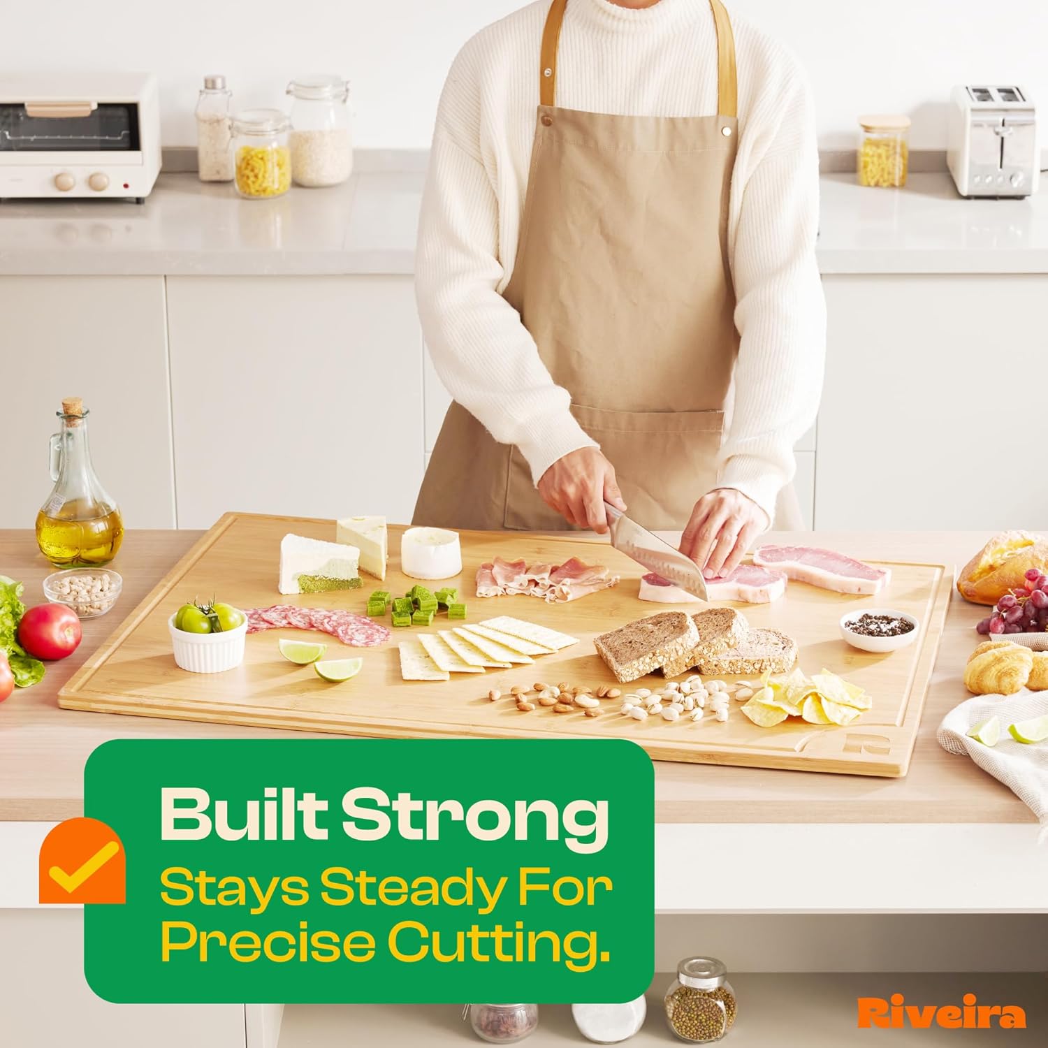Riveira Brown Bamboo Wood Cutting Board – Gourmet Bamboo Grandeur: 36 x 24 Wooden Cutting Board – Wooden Cutting Boards For Kitchen Decorative – Innovative Juice Grooves Wooden Chopping Board