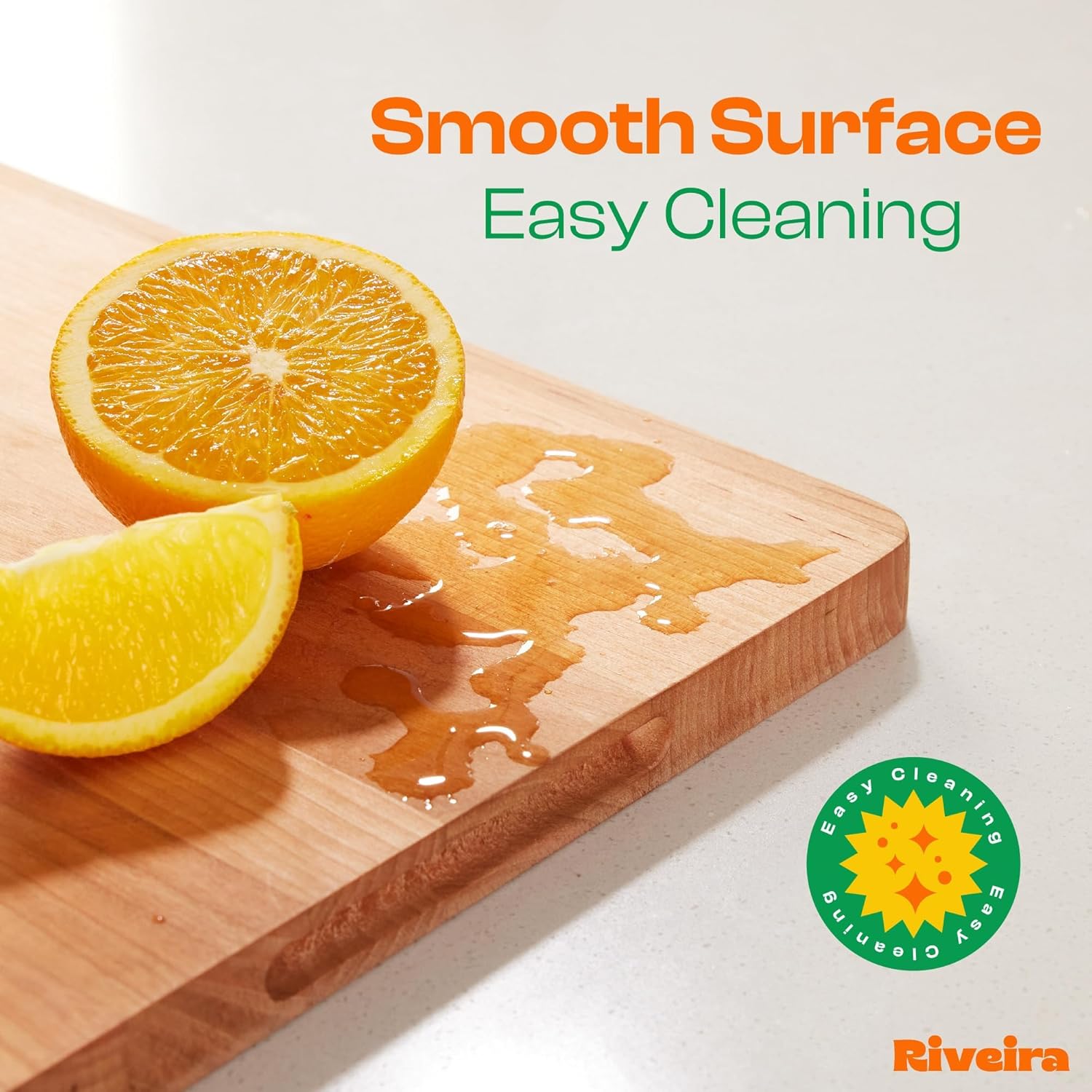 - Handle Everything with Confidence — The built-in handle holds of the cherry cutting boards are designed for handling everything with confidence and easy maneuvering. Pre-oiled and ready for immediate bewilderment, this wooden chopping board is not just convenient for the kitchen mess but has a unique design to maintain, ensuring a performance that is both comfortable and clean for chopping boards for kitchen. Riviera non toxic cutting boards for kitchen will be perfect in your kitchen.