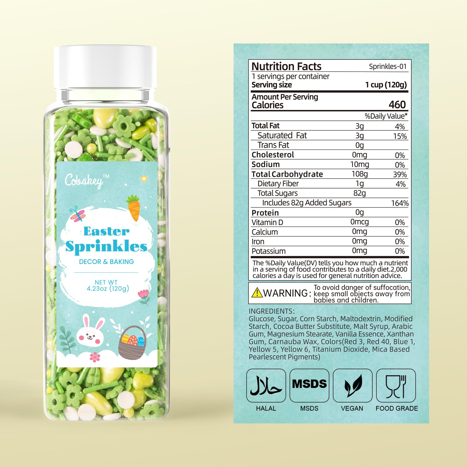 Cobakey Easter Sprinkles for Cookies 4.23 Ounce Spring Sprinkles for Baking Green Easter Eggs Perfect for Easter Cake Decorations, Baking, Ice Cream, Cookies, Cupcake Topper