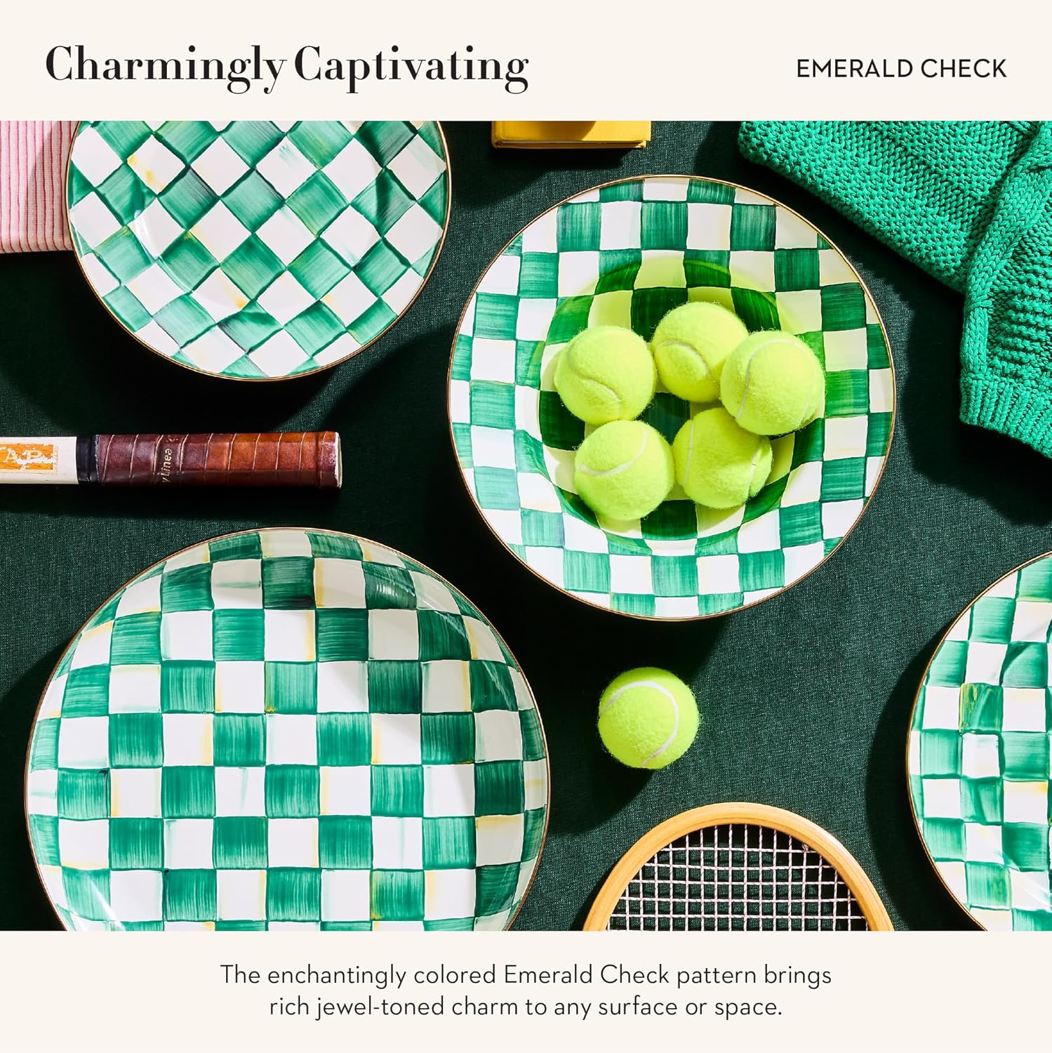 - ENTERTAINING ESSENTIAL: Elevate meals with the Emerald Check large serving bowl featuring enchanting hand-painted color-dragged green-and-white checks. It has a hand-glazed heavy-gauge steel underbody and a bronzed stainless-steel rim.
