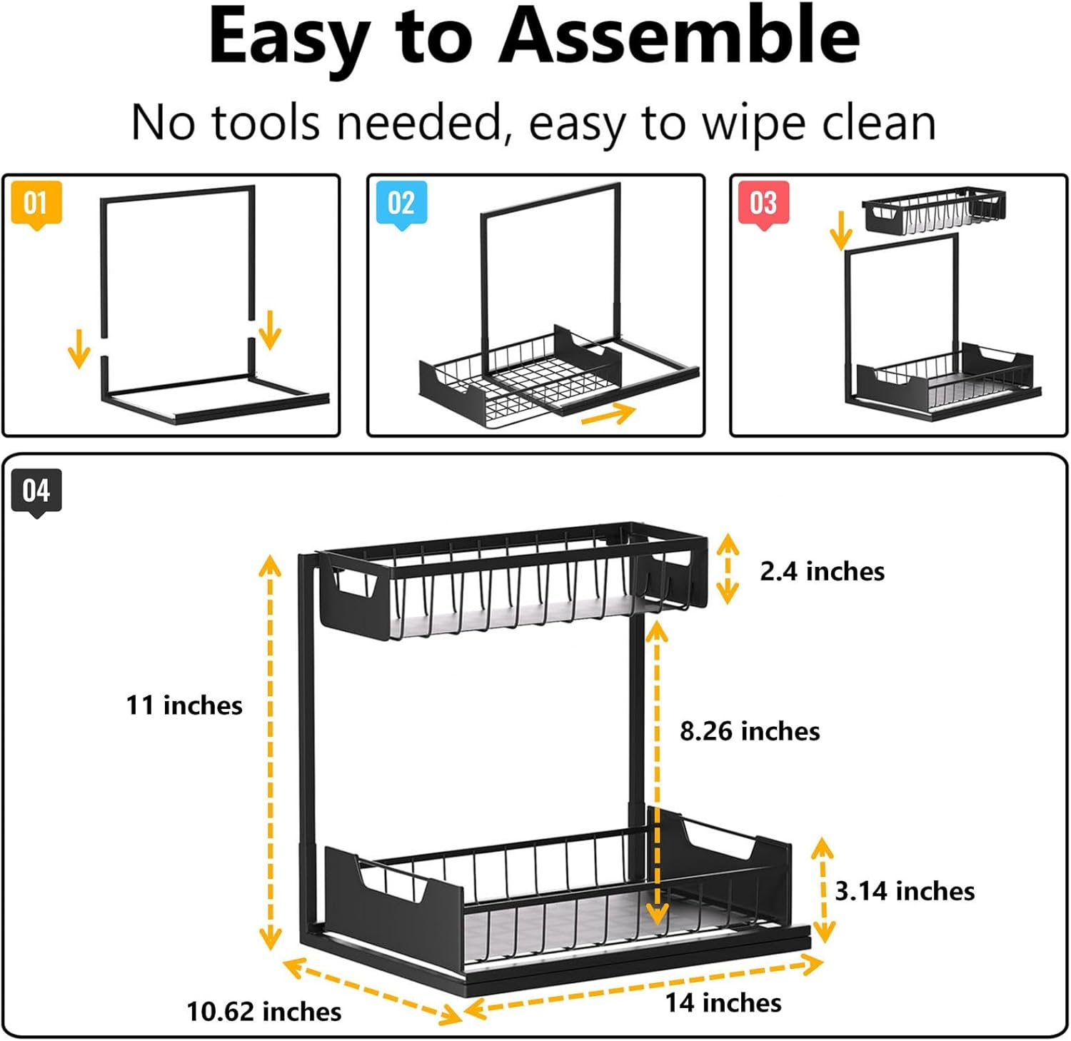 - Versatile: Pull out cabinet organizer can be used under a kitchen or bathroom sink, you can also put it on the counter