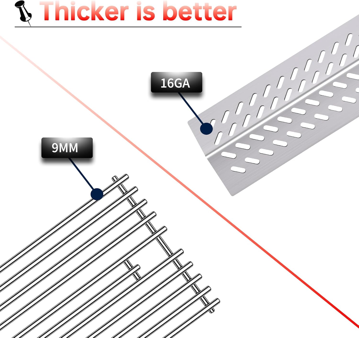 9MM 16517 Grill Grates 16GA Grill Heat Plates for 16631 16520 Bull Grill Replacement Parts, BBQ Bull Brahma 5 Burner 57568, 57569, 57568CE, 57568AGA, 57569CE, 57569AGA, Stainless Steel Grids