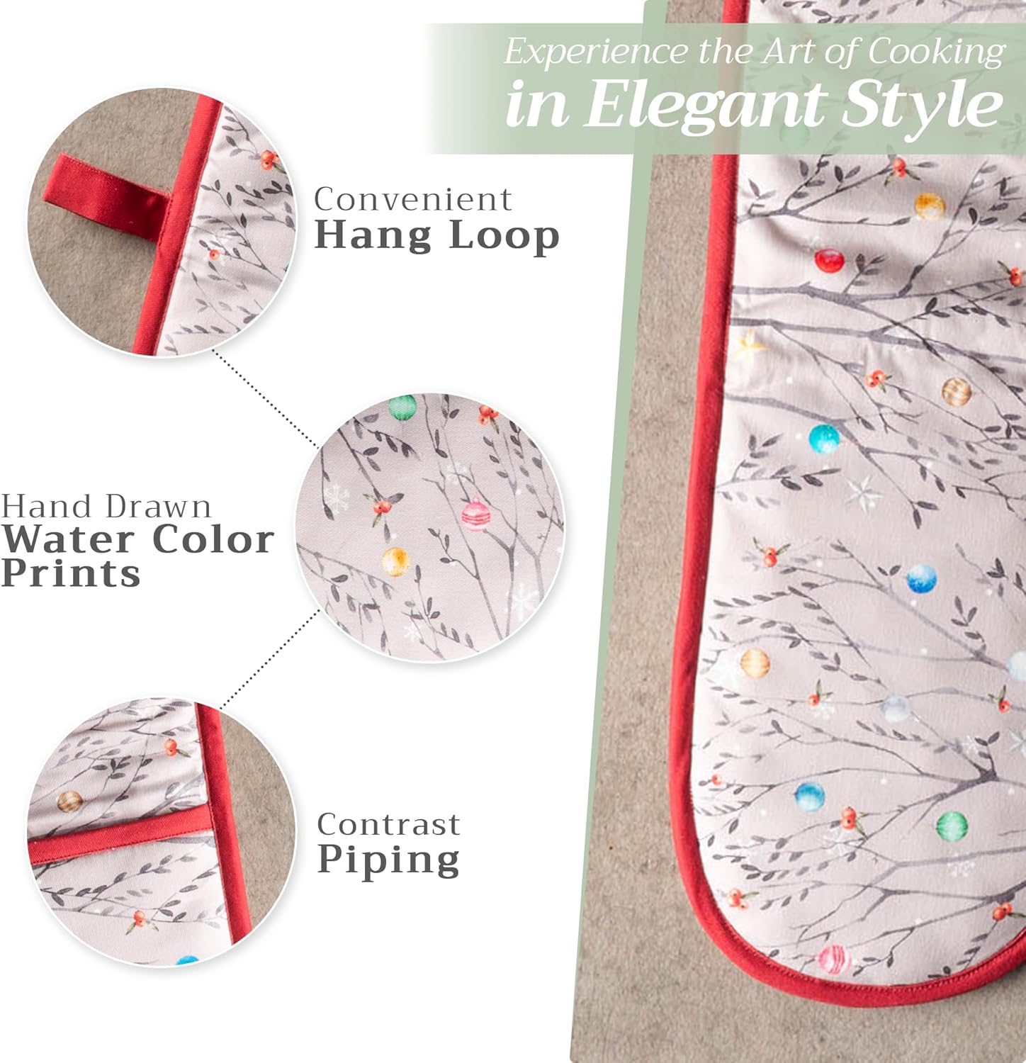 Maison d' Hermine Double Oven Mitt 100% Cotton Heat Resistant Cooking Gloves with Loop, Baking Barbeque, Handling Hot Pan, Fairy Christmas - Thanksgiving/Christmas (7 Inch x 35 Inch)