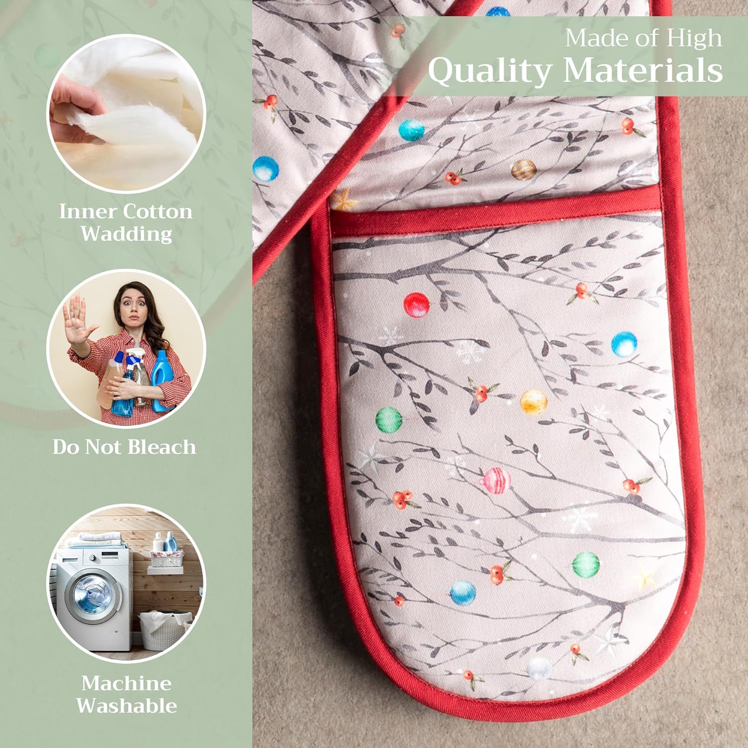 - 100% QUILTED COTTON - Unlike other double oven mitts, we only use the best quality cotton to ensure that only the finest gloves produced end up on your hands