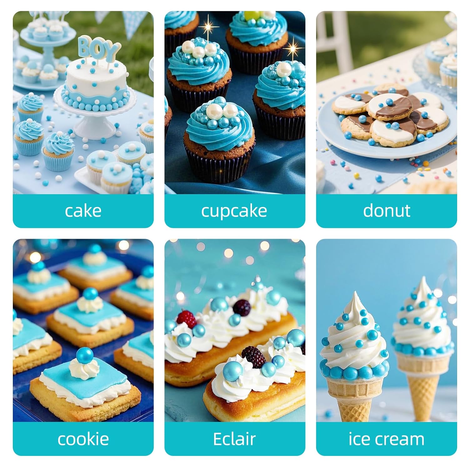 - Versatile Dessert Decoration: Our sprinkles includes 5 different sizes of Blue beads,perfect for meeting all your baking decoration needs.The sugar decorations are edibled candies. It is normal for large candies to have a hard texture and can be eaten with confidence.After baking, decorate the cookies or cake with pearl sugar to avoid melting