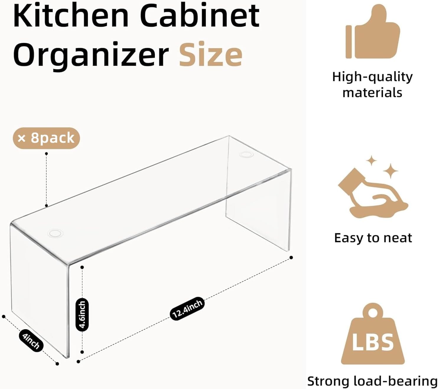 8 Packs Cabinet Organizer Shelf, Acrylic kitchen Cabinet Shelves, Shelf Riser for Dishes, Spices, Soda Cans and Bottles(12.4 x 4 x 4.6 inch)