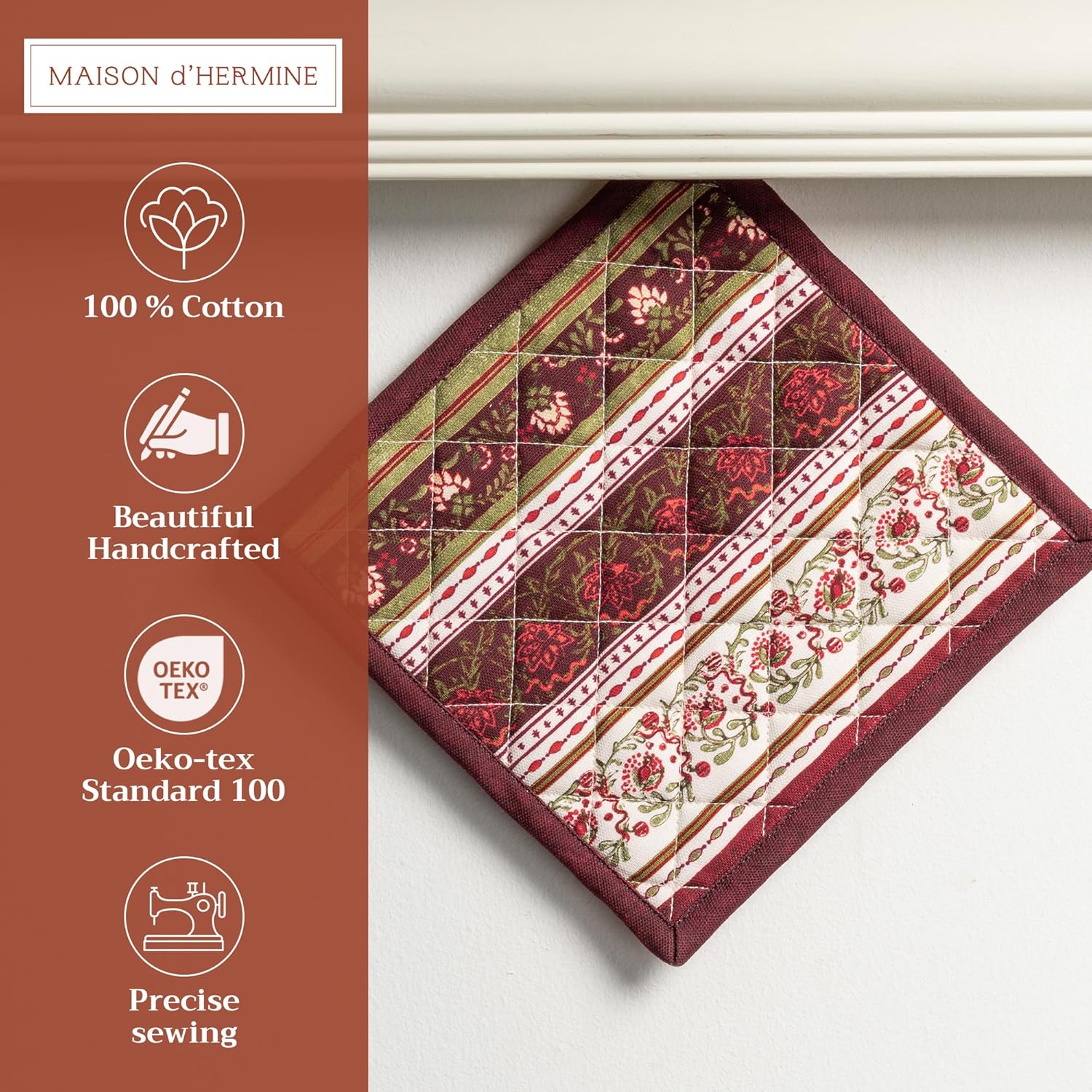 - 100% Quilted cotton: Made from premium quilted cotton, our pot holder ensures safe handling of hot pans or dishes. The soft, durable build provides excellent heat resistance and grip—perfect for everyday cooking and baking needs
