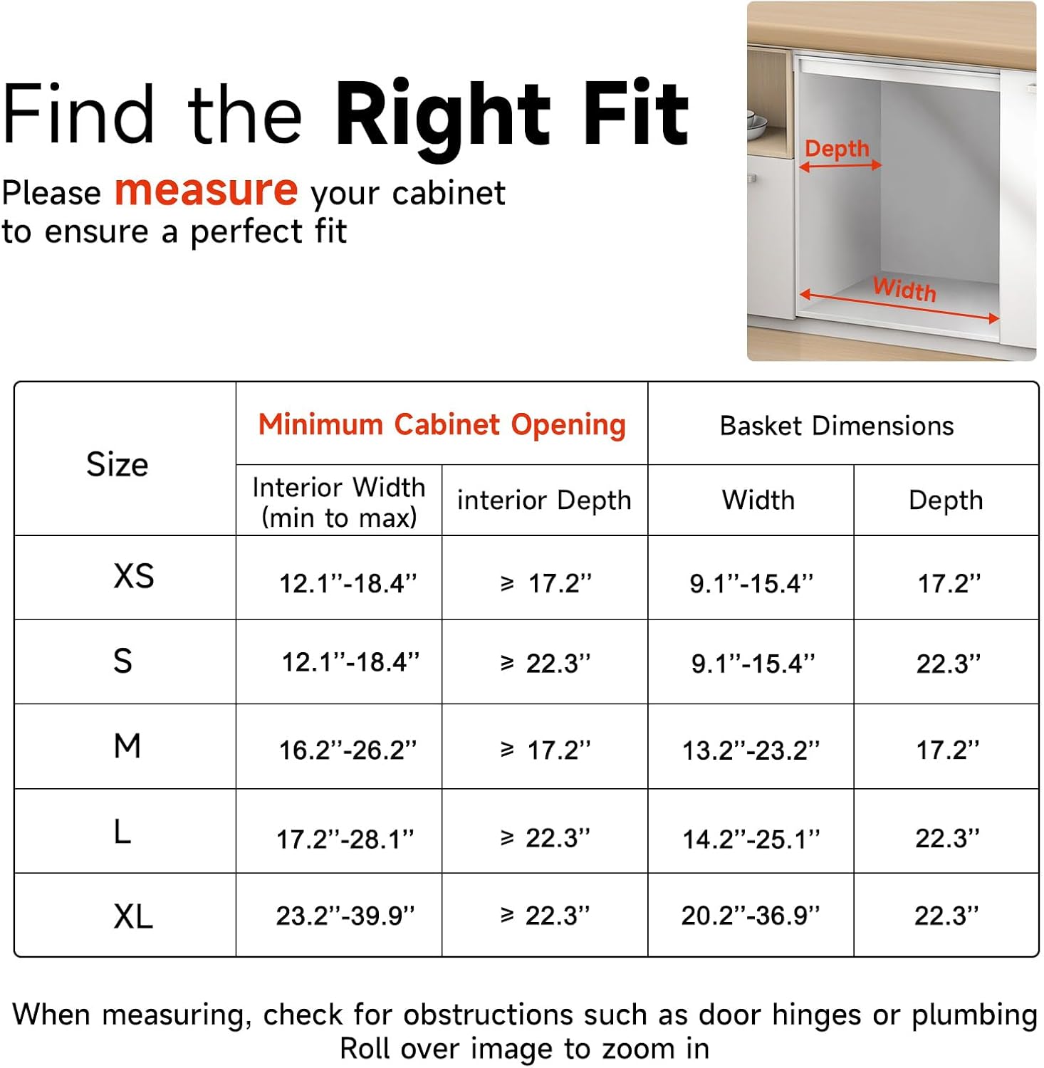 - Upgraded Expandable Design: This pull out cabinet shelf is designed to fit in most cabinets. The width of the wire basket can be adjusted from 12.3'' to 18.5''. Unlike the traditional bottom-mounted pull out cabinet organizer, our pull out cabinet organizer can not only expandable but also adjust the height to be installed on the side, not only at the bottom. The new expandable design gives you a better experience and saves your space.