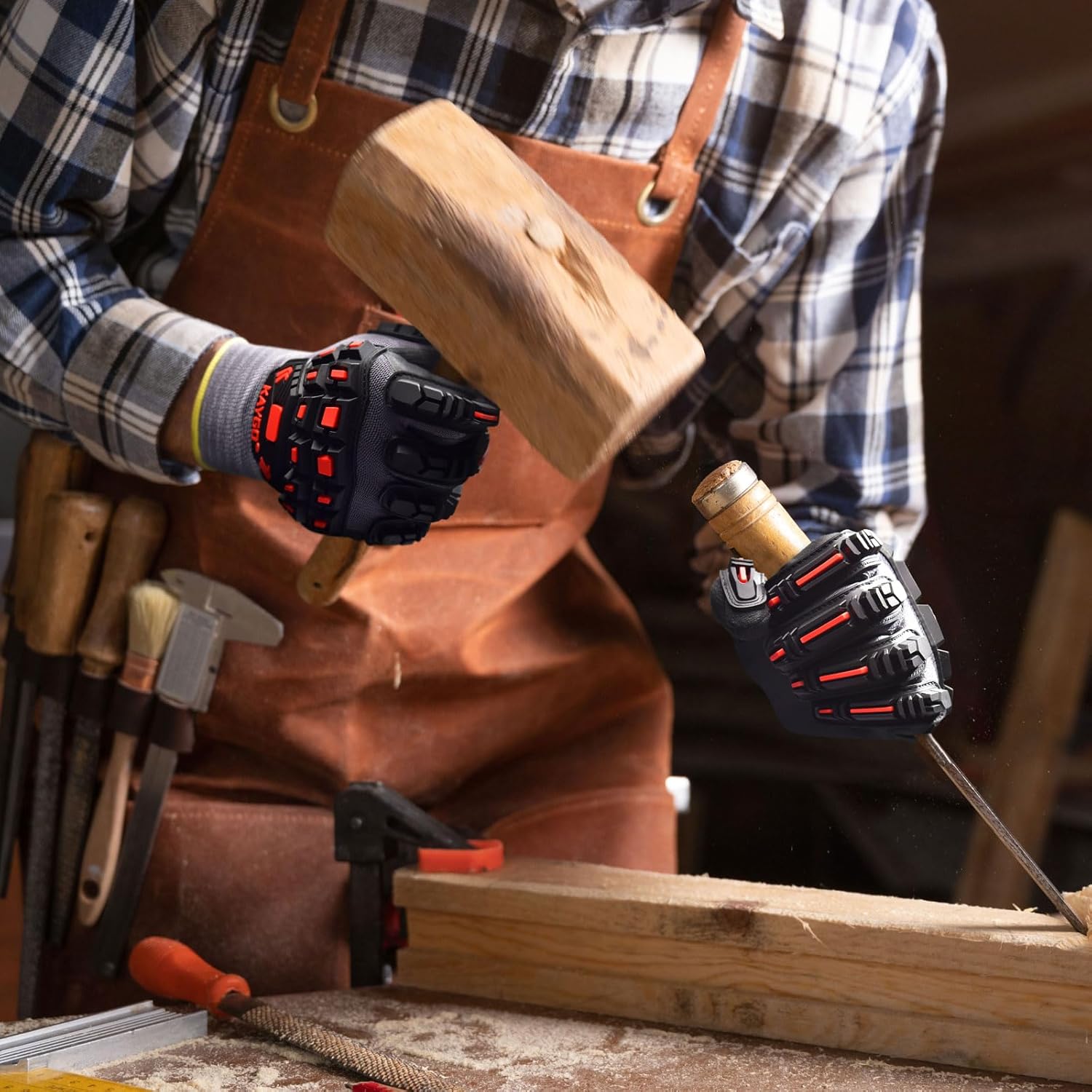 - TPR Impact Protection: Our work gloves feature TPR (Thermoplastic Rubber) padding on the back, providing superior impact protection to meet EN388 standards. The TPR material absorbs and disperses impacts and bumps, safeguarding hands without sacrificing flexibility or dexterity
