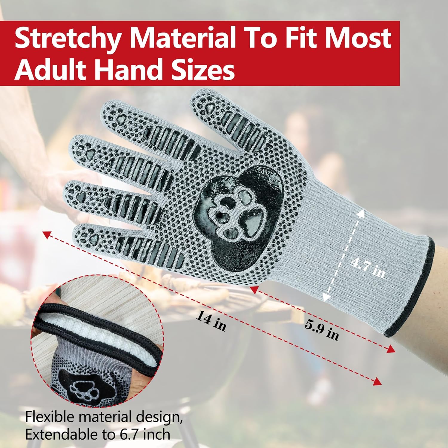 UBeesize Lengthen BBQ Gloves (Bear Paw), 1472°F Heat Resistant Grill Glove, 14 inch Fireproof Oven Gloves for Cooking, Non-Slip Fire Glove for Grilling, Barbecue, Smoker, Baking, Frying