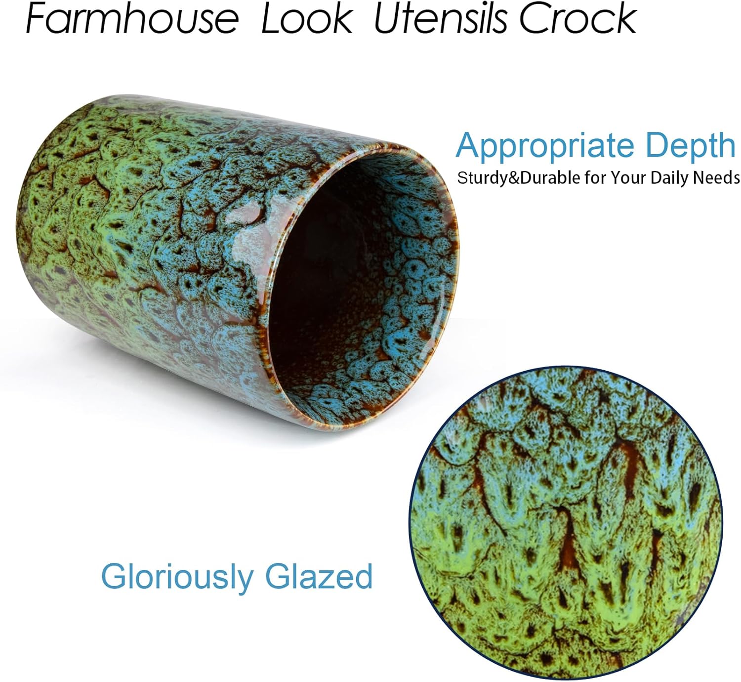 Utensil Holder, Ceramic Kitchen Utensil Holder for Countertop, Large Cooking Utensil Crocks for Kitchen Counter, Morden Utensil Organizer for Spatula, kitchen Decor, Blue & Green