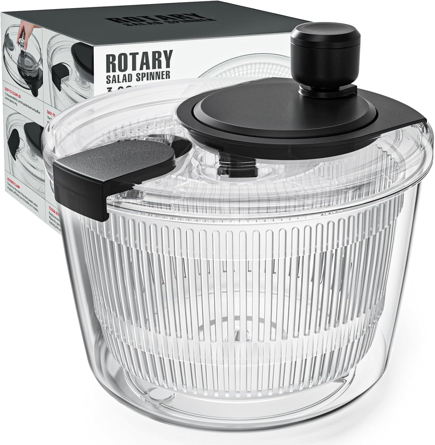- Versatile: The multipurpose salad spinner as a dryer, drainer, crisper, filter and container, Suitable for salad greens, herbs, lettuce, arugula, spinach and fruits, etc; perfect to make home cooking preparation easier and faster.