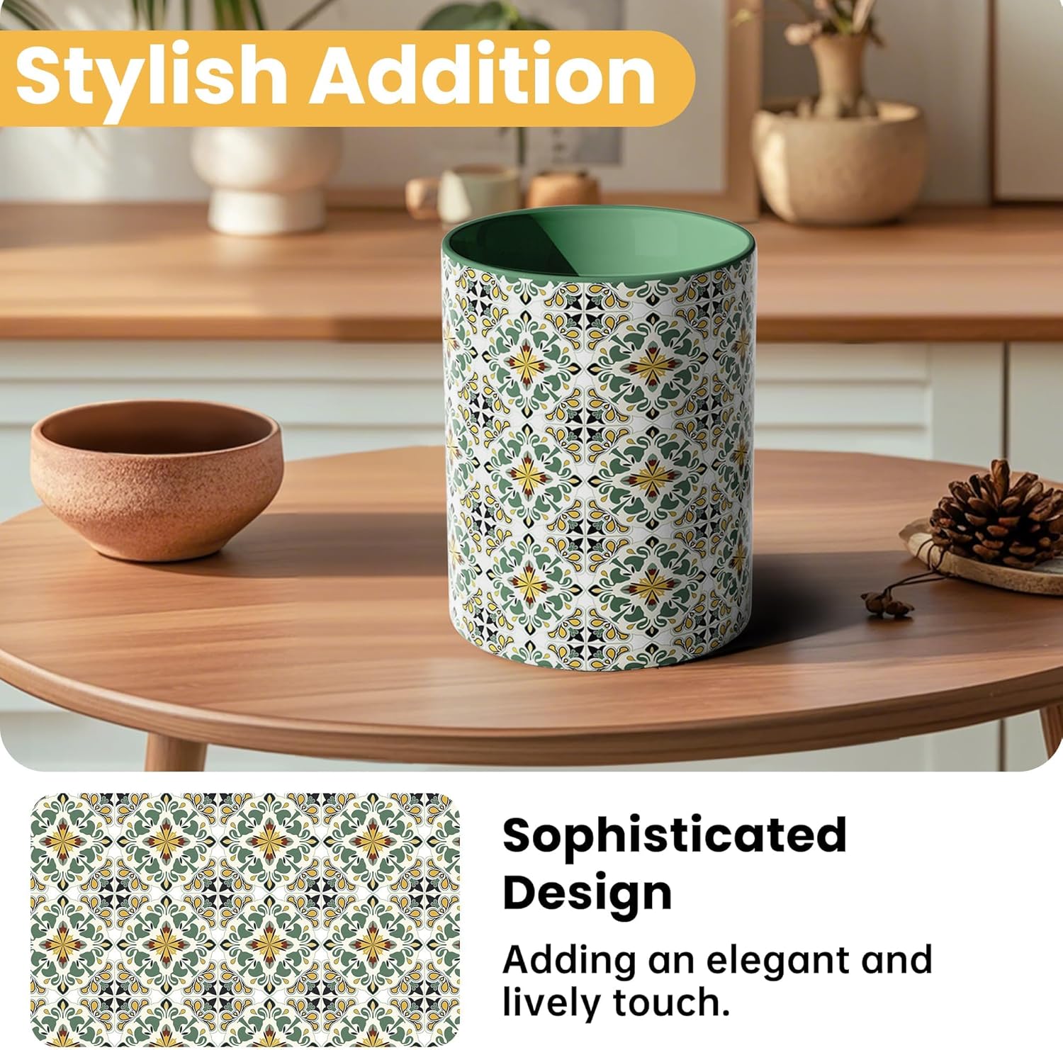 - Vibrant Green Pattern:Featuring a stunning green floral design, this utensil holder adds a pop of color and style to your kitchen decor.