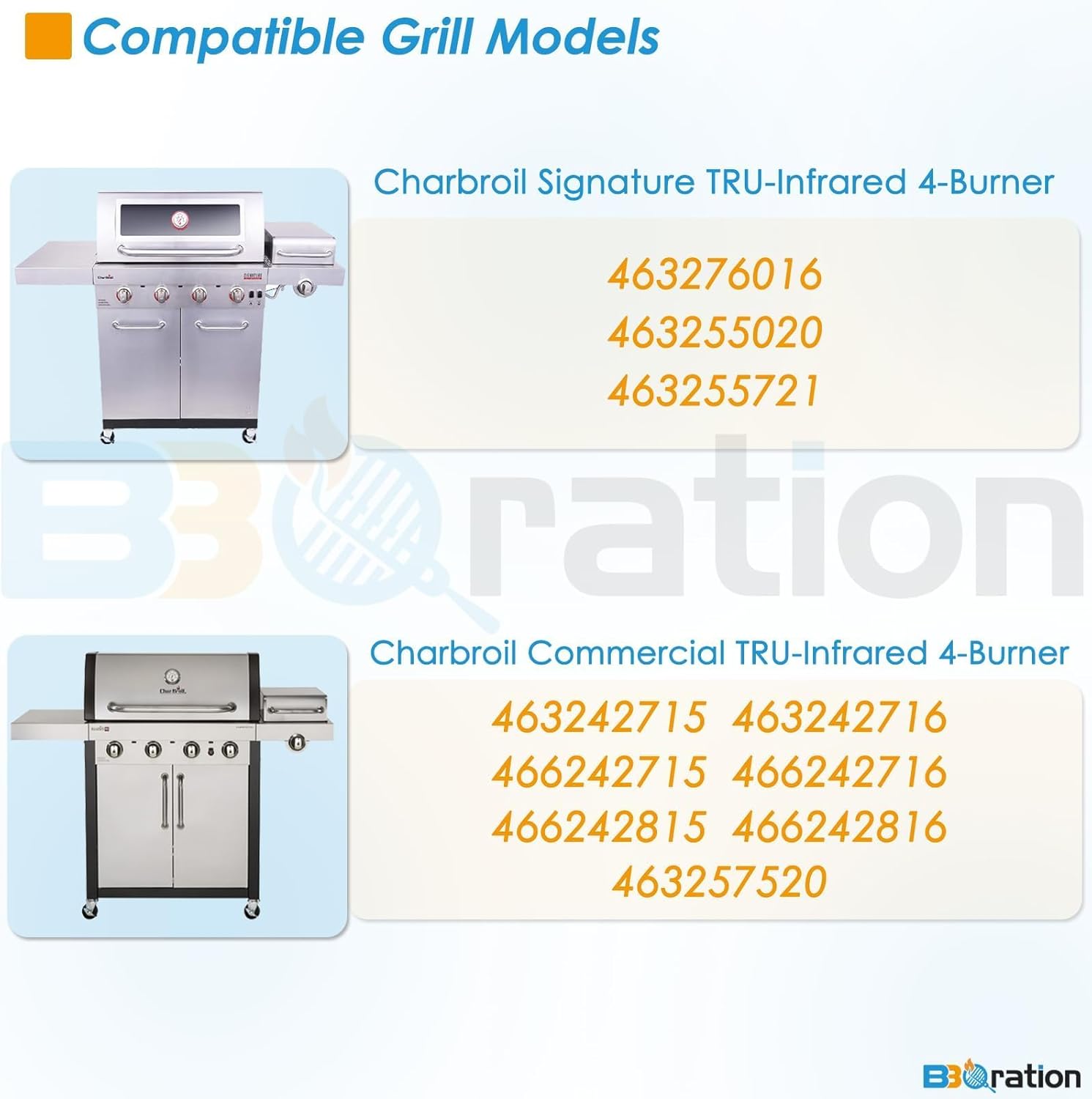 - Tips: BBQration-Focusing on serving for barbecue lovers, click the "BBQration" button (top middle of the page) to get more details of the product. Please be sure our product fit your grill size before purchase. Reach out if you need anything