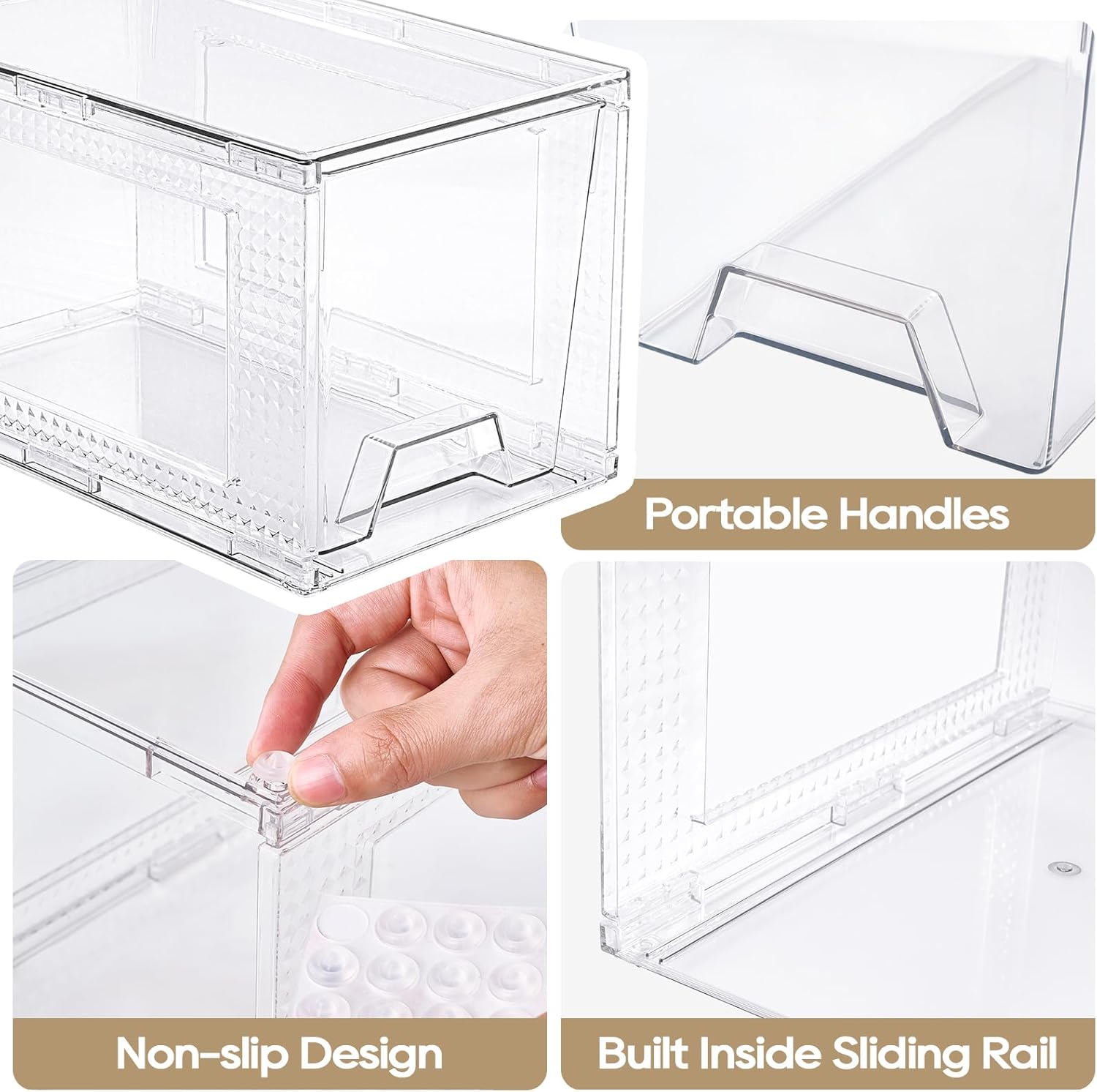 - Premium Quality: Made of high-quality plastic, these clear storage drawers are sturdy, long-lasting, and safe for food. The clear plastic design makes it easy to view contents at a glance