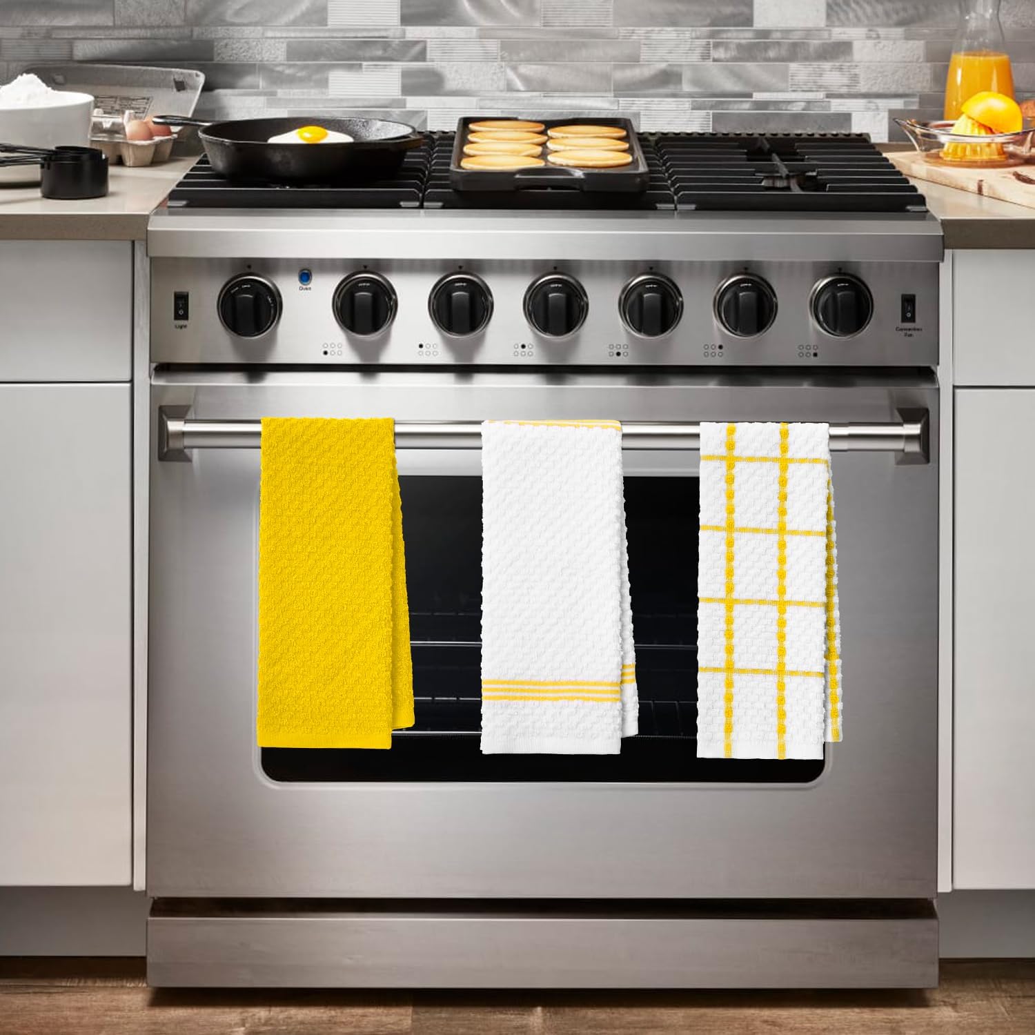 Artoid Mode Ring Spun Cotton Yellow Kitchen Dish Towels, 15x25 Inch Ultra Soft Absorbent Quick Drying Household Cleaning Tea Towels Bar Towels Set of 6