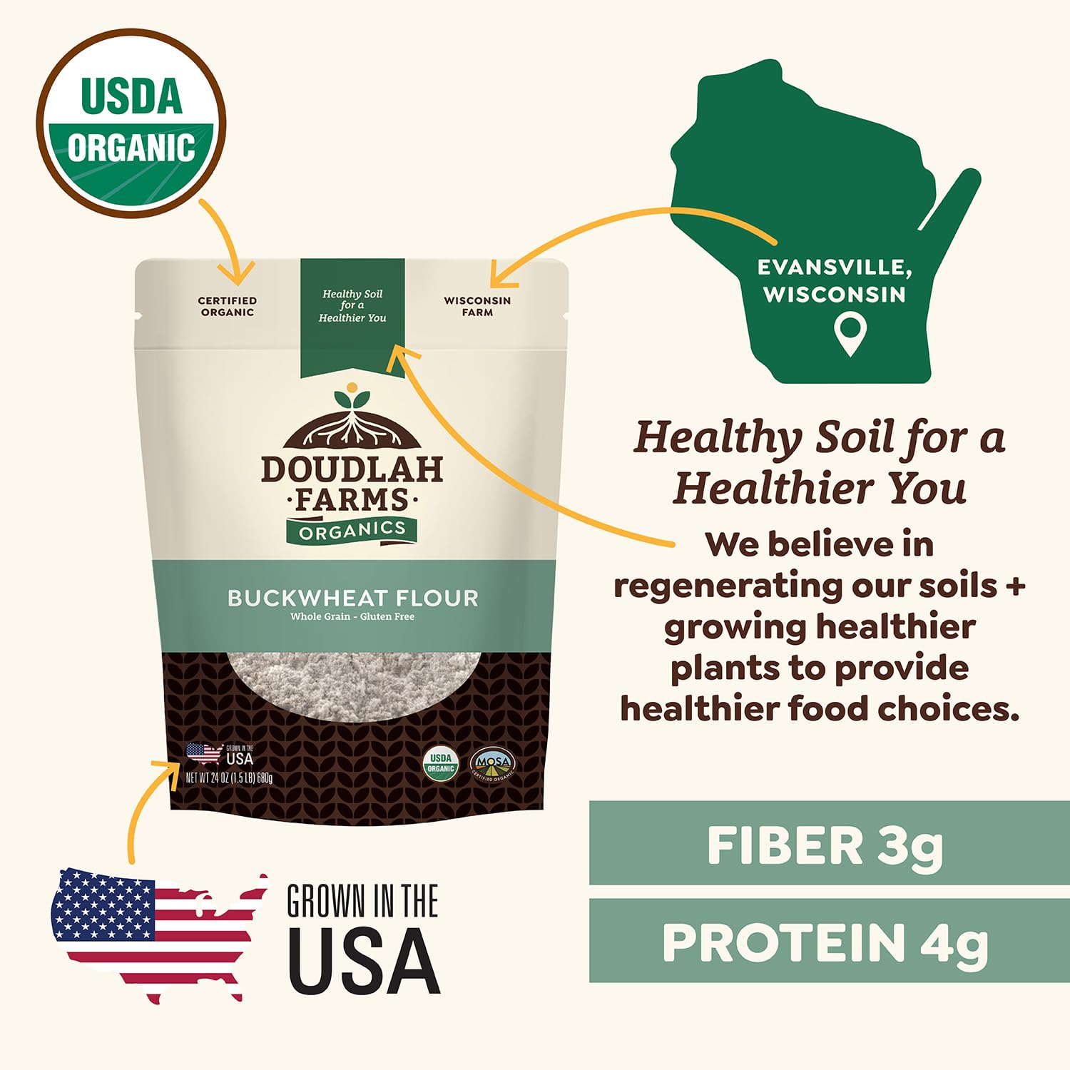 Organic Buckwheat Flour 25 lb Bulk - Non-GMO, USDA Organic, Gluten Free, Vegan - For Baking Bread, Pancakes, and More! Grown In USA, Farmed From Regenerative Soil by Doudlah Farms
