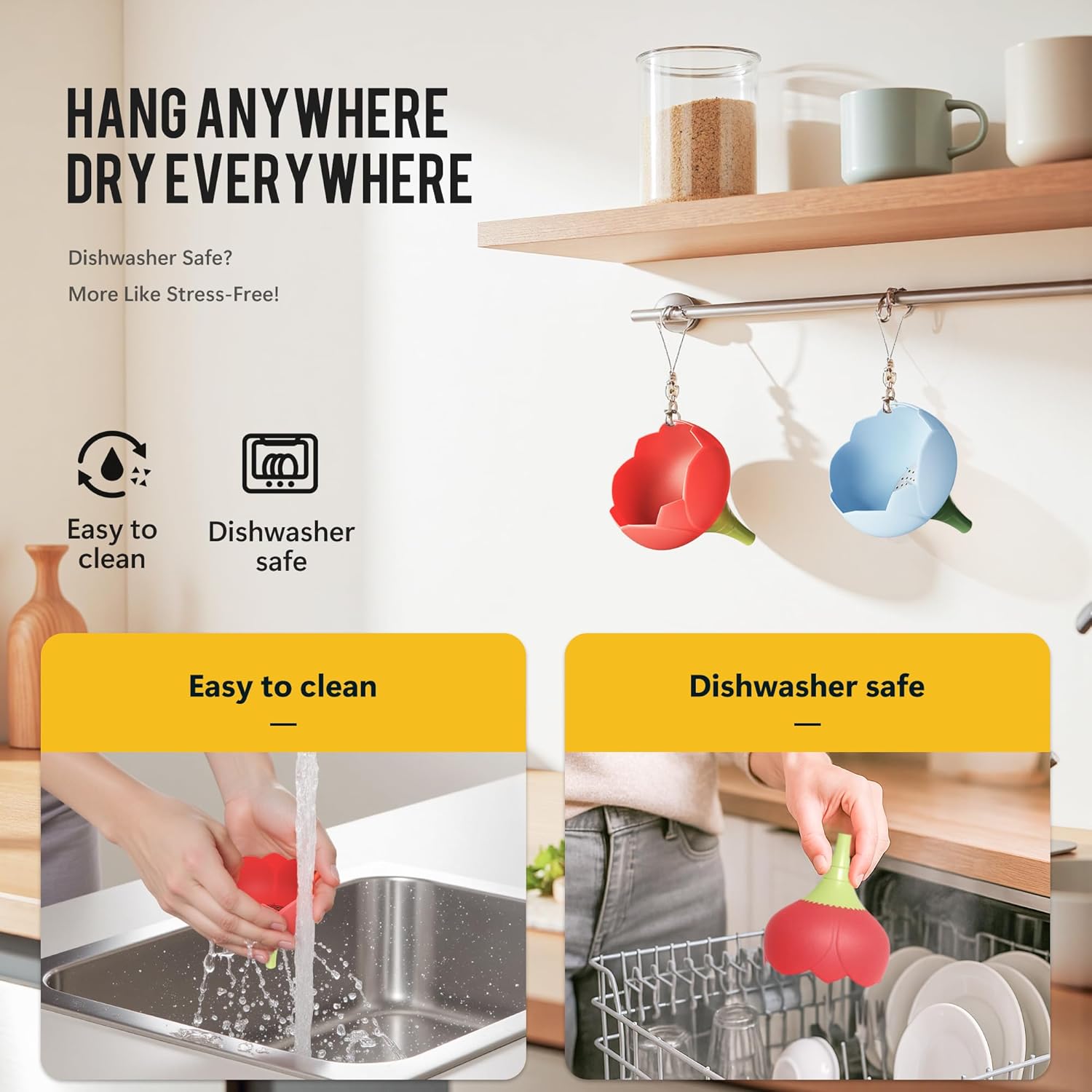 - Easy to Clean: Our small kitchen funnel is stain-resistant and very easy to clean and dry. When it needs cleaning, just wash it with warm water and a little soap. It can also be put in the dishwasher for easy cleaning