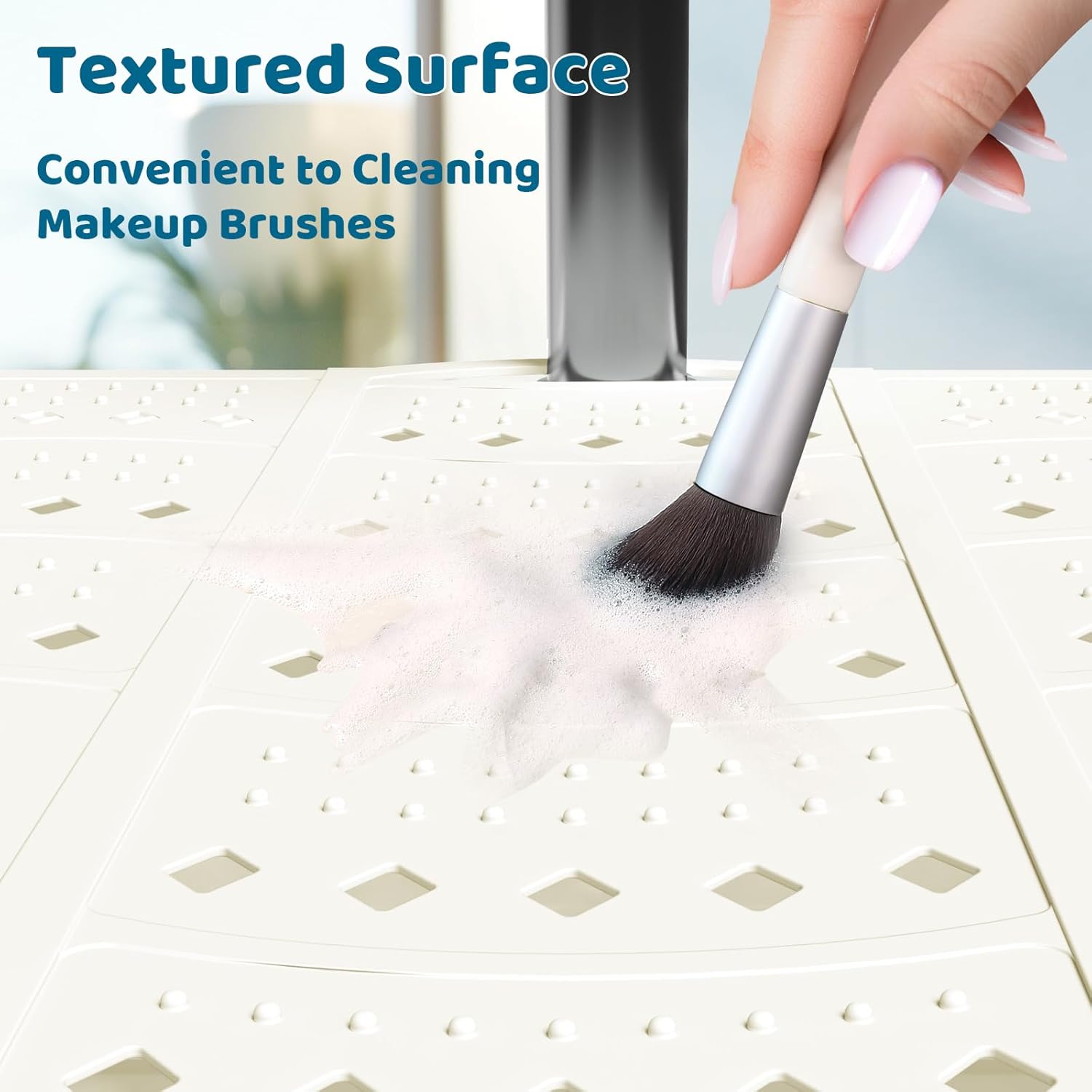 - High Quality: Crafted from high-quality silicone, this sink cover heat resistant up to 450 degrees Fahrenheit, safely place hot styling tools such as curling irons, hairdryers, or straighteners on its surface. And it with raised particle on the surface, convenient for you to clean your makeup brush.