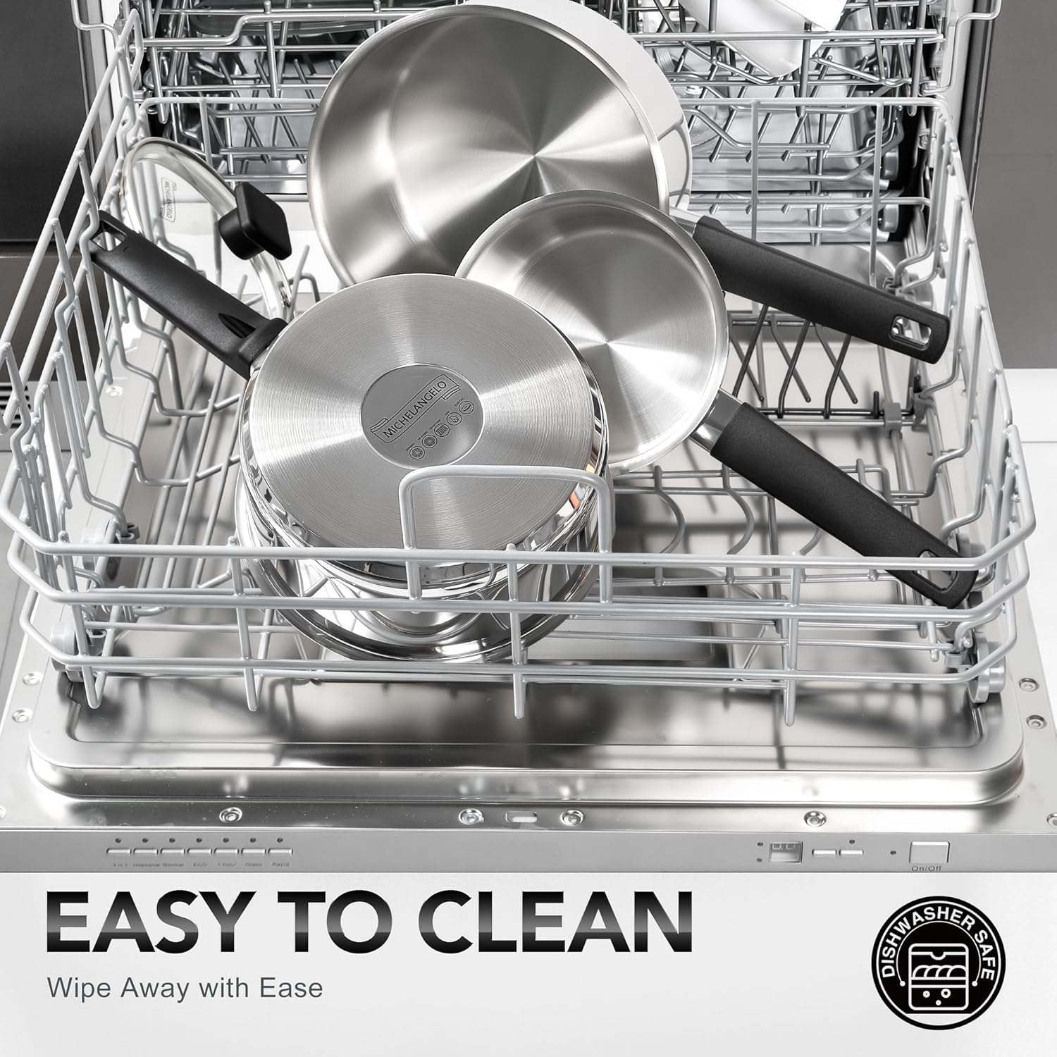 - Effortless Cleanup: The stainless steel saucepan set with lid is 100% dishwasher safe, saving you time and effort after every meal. Just place it in the dishwasher—no scrubbing or soaking needed. Enjoy stress-free cleanup.