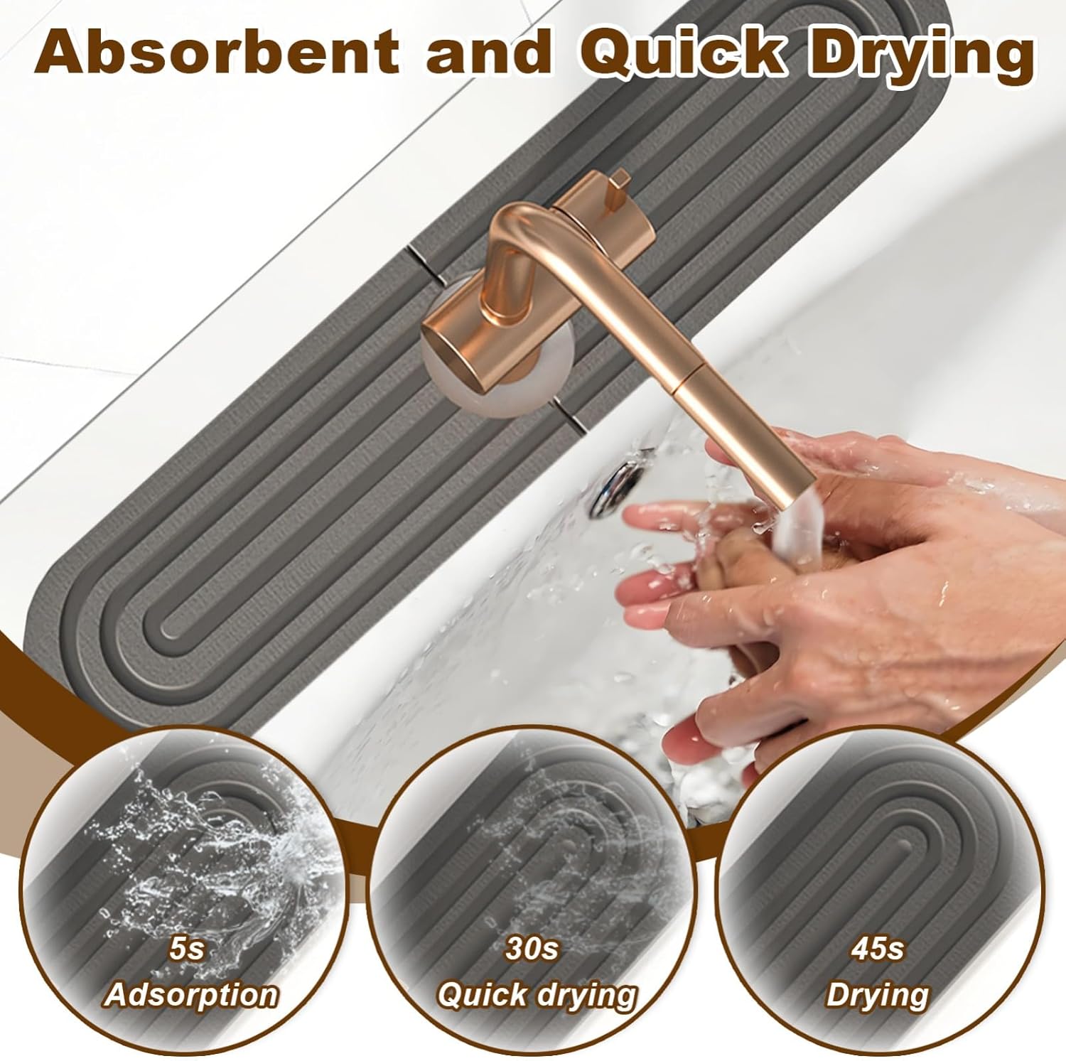 Faucet Mat for Kitchen Sink, Diatomite Super Absorbent Fast Drying Stone Sink Tray for Bathroom Kitchen Sink Splash Guard(Round Dark Grey,17.7x3.9in)