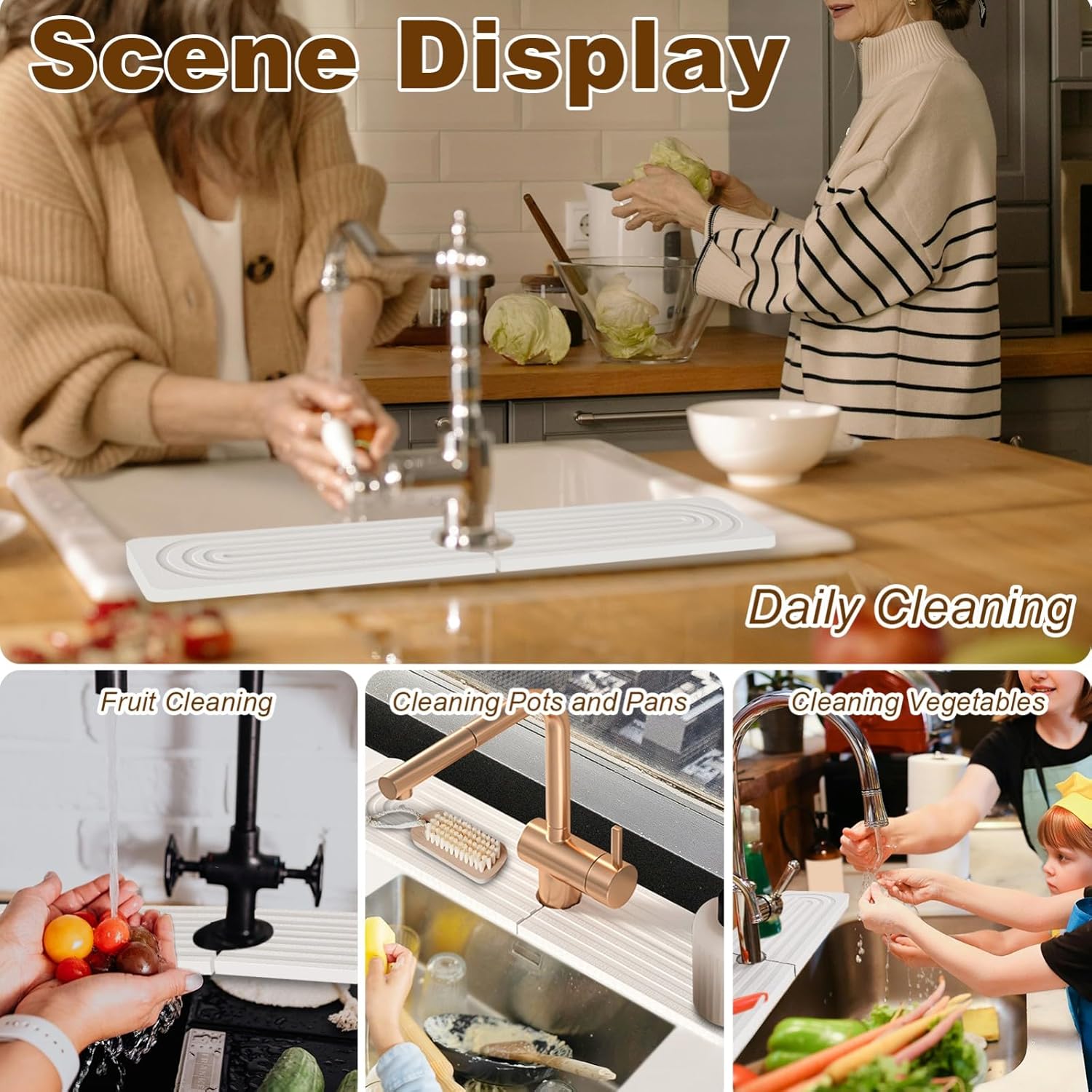 Faucet Mat for Kitchen Sink, Diatomite Super Absorbent Fast Drying Stone Sink Tray for Bathroom Kitchen Sink Splash Guard(Square White,23.6x3.9in)