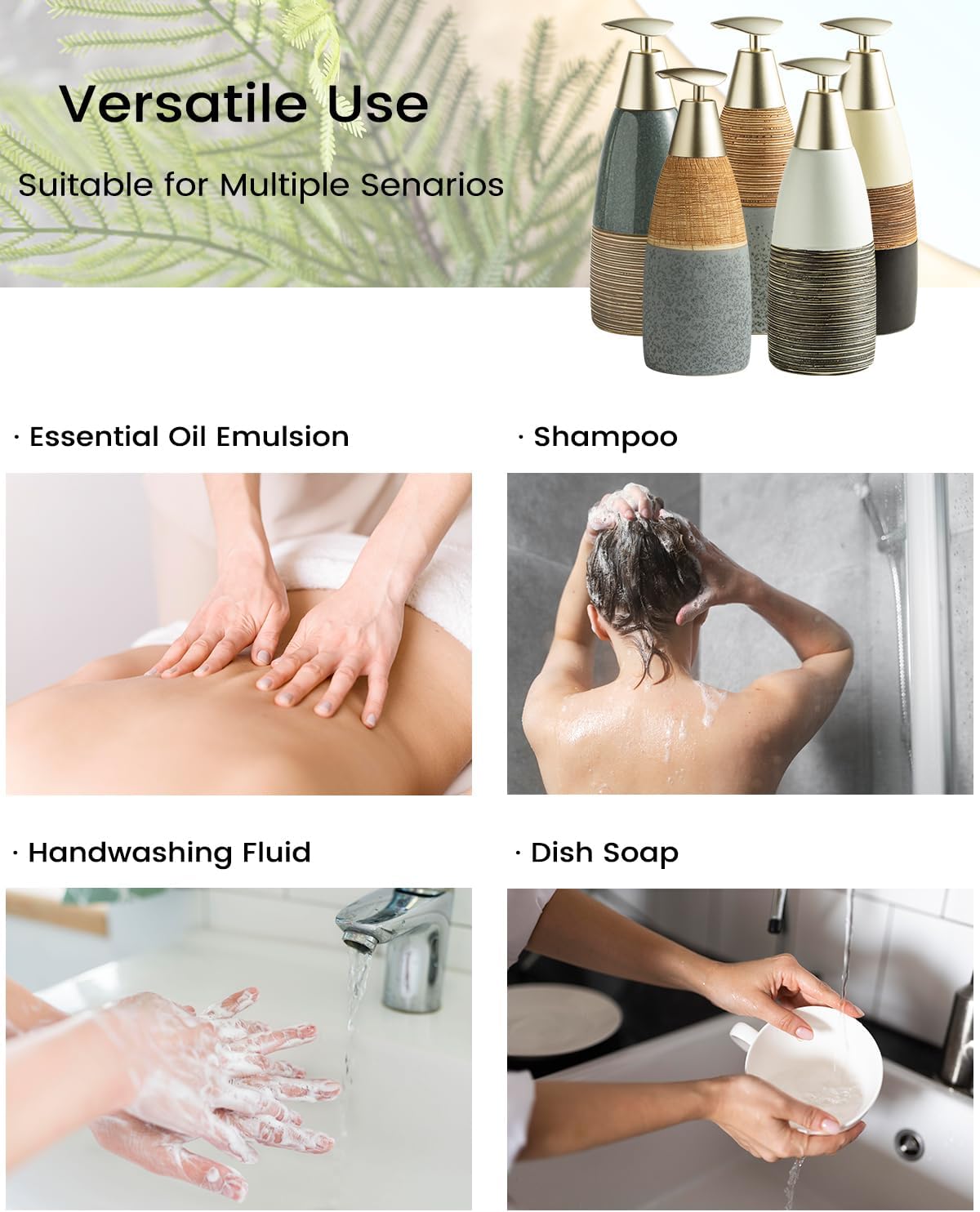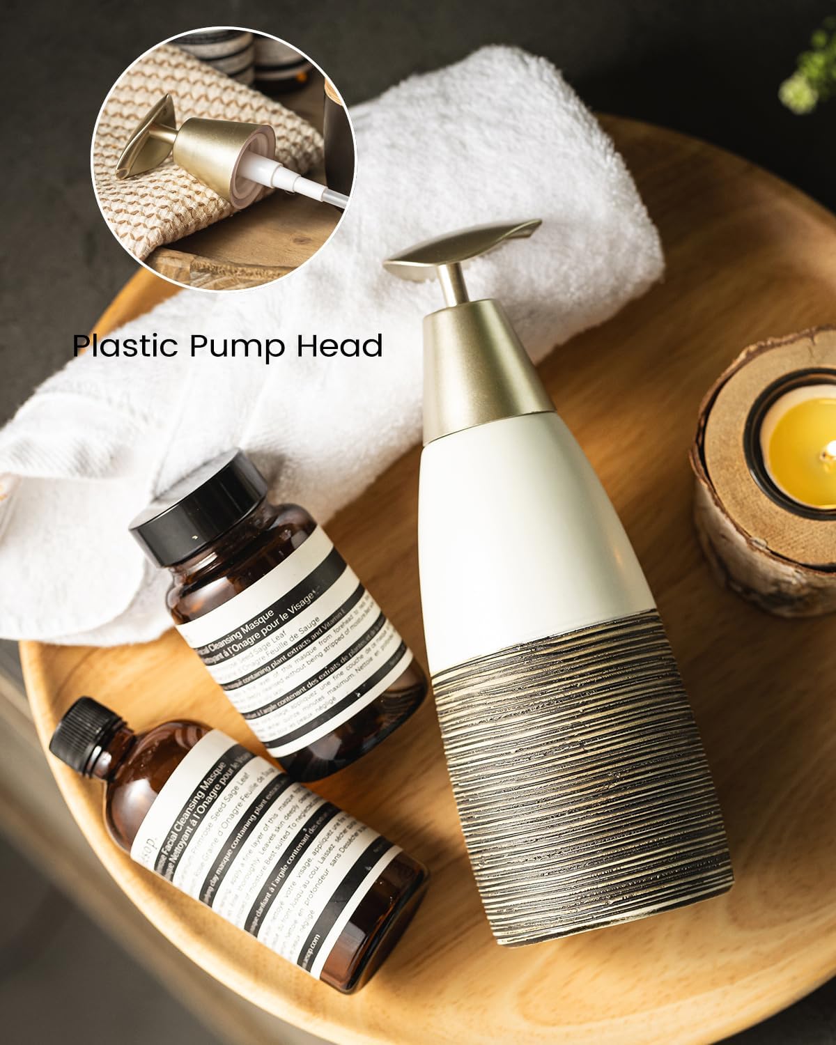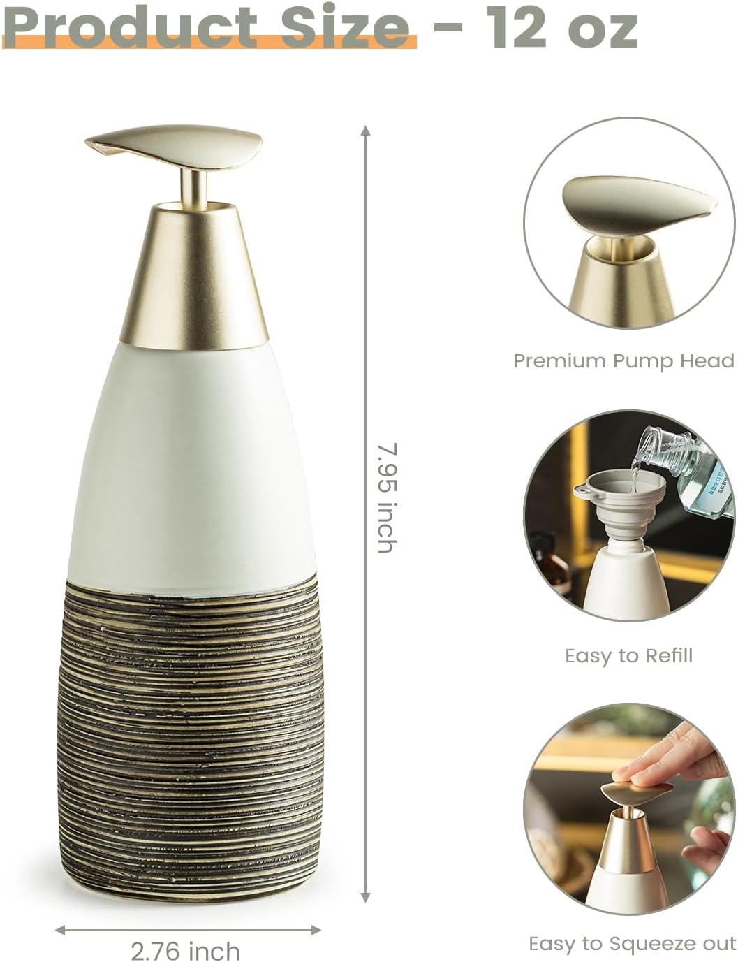 Dish Soap Dispenser Ceramic Liquid Dispenser for Bathroom Hand Soap Bottle with Pump, 12oz Refillable Liquid Bottle for Body Wash, Shower Gel, White