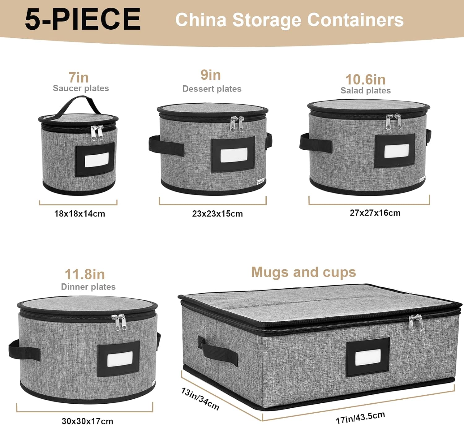 homyfort China Storage Containers, Hard Shell for Plates, Moving Boxes for Dishes, Cups, Mugs, Tableware Moving Supplies for Kitchen Organization- 5-Piece Set (5-piece set)