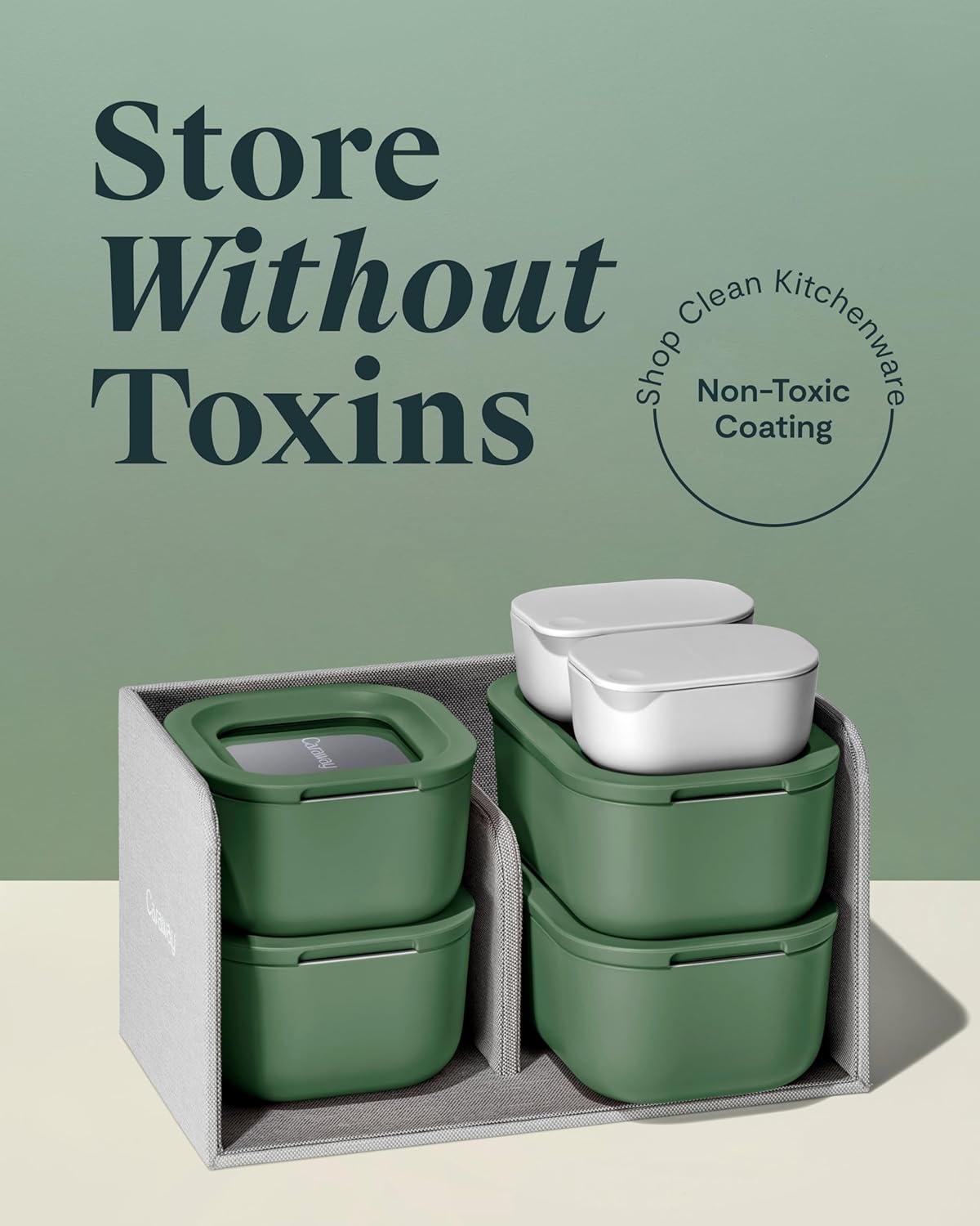 Caraway Mini Food Storage 11pc Set - Glass Storage Containers for Food - Non-Toxic Ceramic-Coated Glass - Air Release Technology - Compact & Stackable Design - Sage