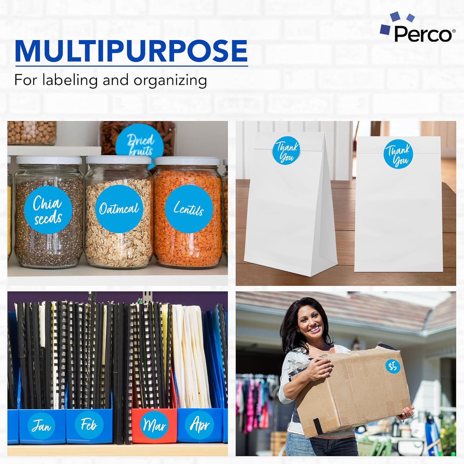 Perco Light Blue 3-Inch Round Circle Dot Sticker Labels - Multi-Roll Pack (3 Rolls, 500 Labels Each) - Permanent Adhesive, Vibrant Colors, Strong Hold - Perforated for Easy Use - Made in USA