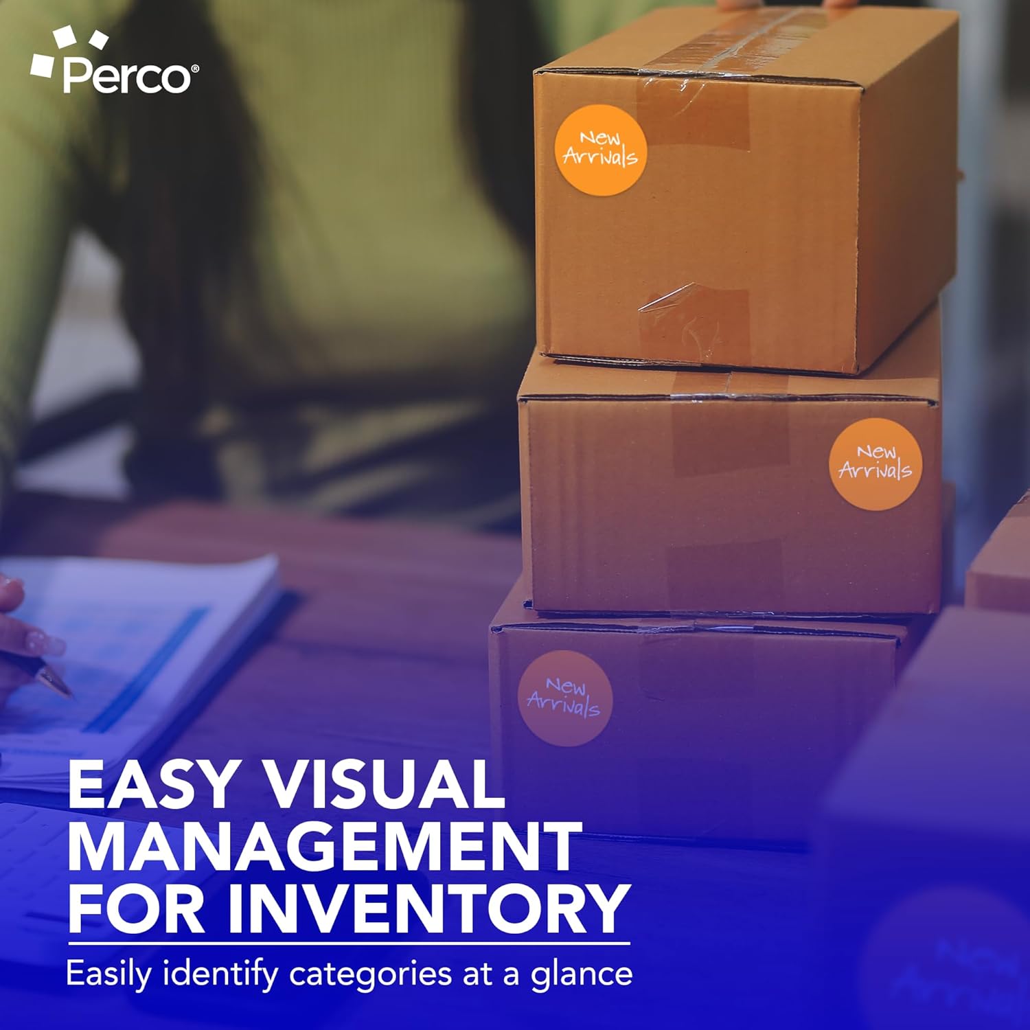 Perco Fluorescent Orange 3-Inch Round Circle Dot Sticker Labels - Multi-Roll Pack (3 Rolls, 500 Labels Each) - Permanent Adhesive, Vibrant Colors, Strong Hold - Perforated for Easy Use - Made in USA