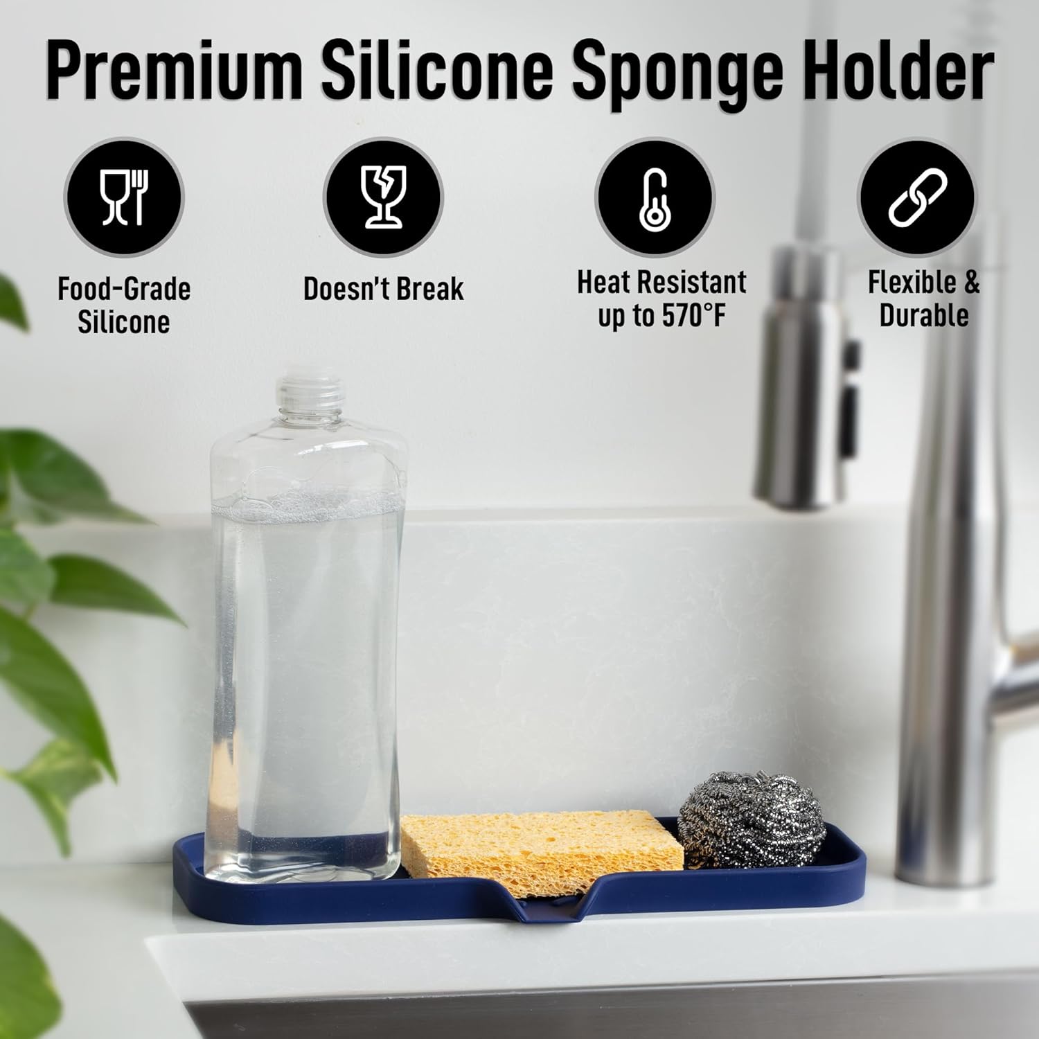 - DURABLE AND HEAT RESISTANT: Built with non-scratch silicone, this dish soap holder is thick, durable, and made to last. Our kitchen sponge holder can withstand heat up to 570°F, making it ideal for hot tools like cooking spoons, curling irons, or straighteners.