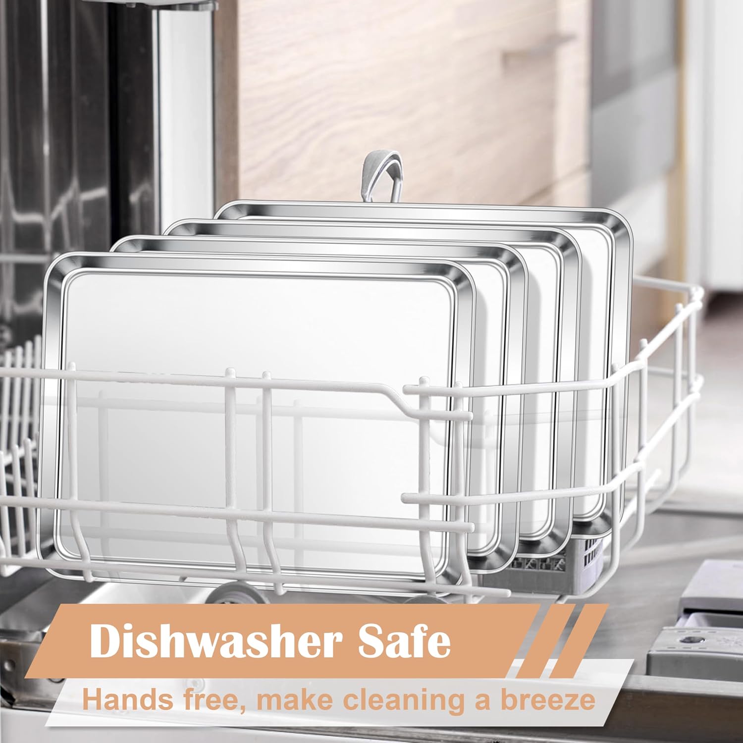 E-far Baking Sheets Set of 4, 16” x12” x 1” Stainless Steel Cookie Sheets Pans for Oven, Non-toxic Metal Trays for Baking Cake Cookie, Healthy & Rust Free, Mirror Finish & Dishwasher Safe