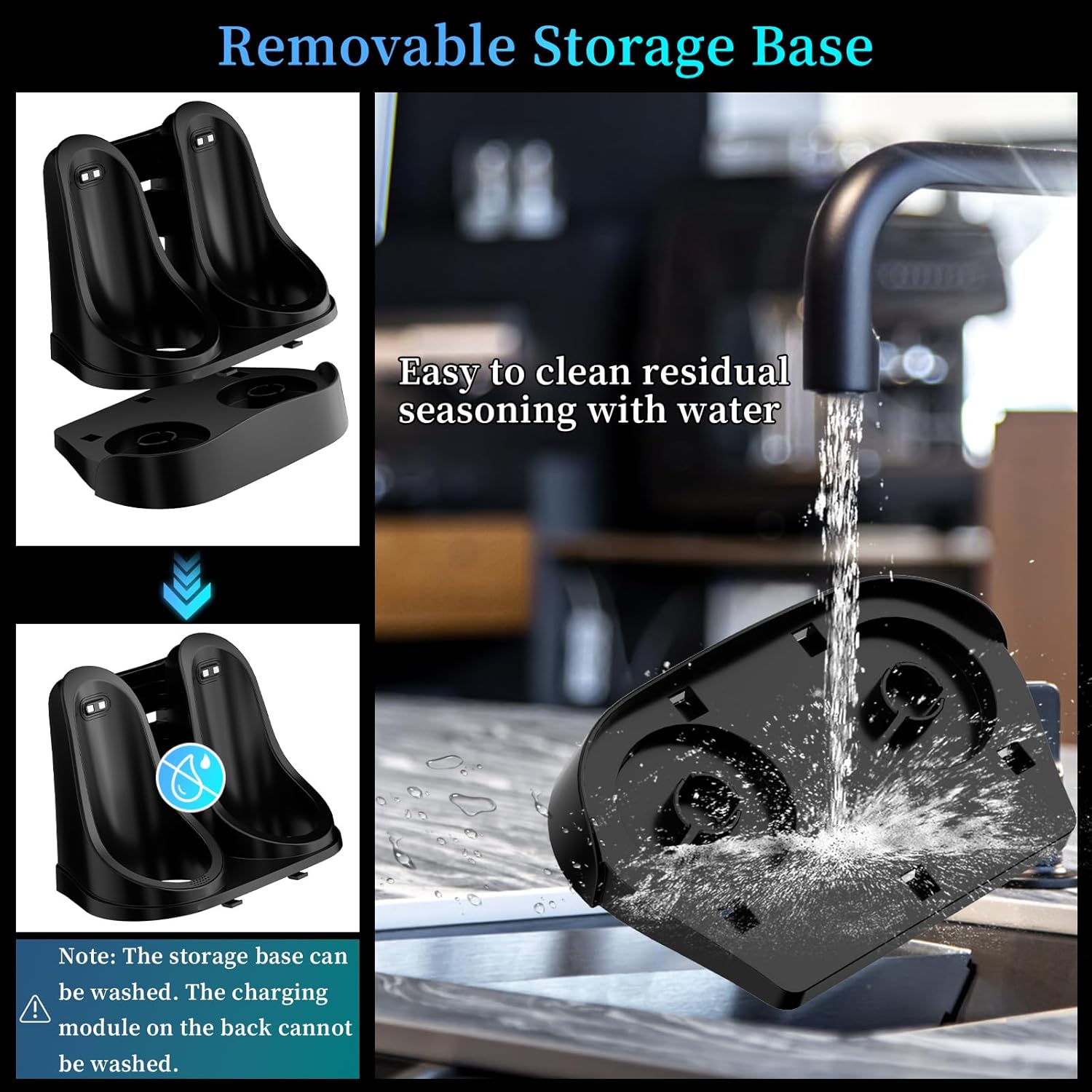 - Type-C Charging and Removable Base: The rechargeable salt and pepper grinder comes with a type-c charging cable for quick charging. The charging base of the electric salt and pepper grinder can be used for both charging and storage. Note: The storage base is washable, but the charging module on the back is not washable